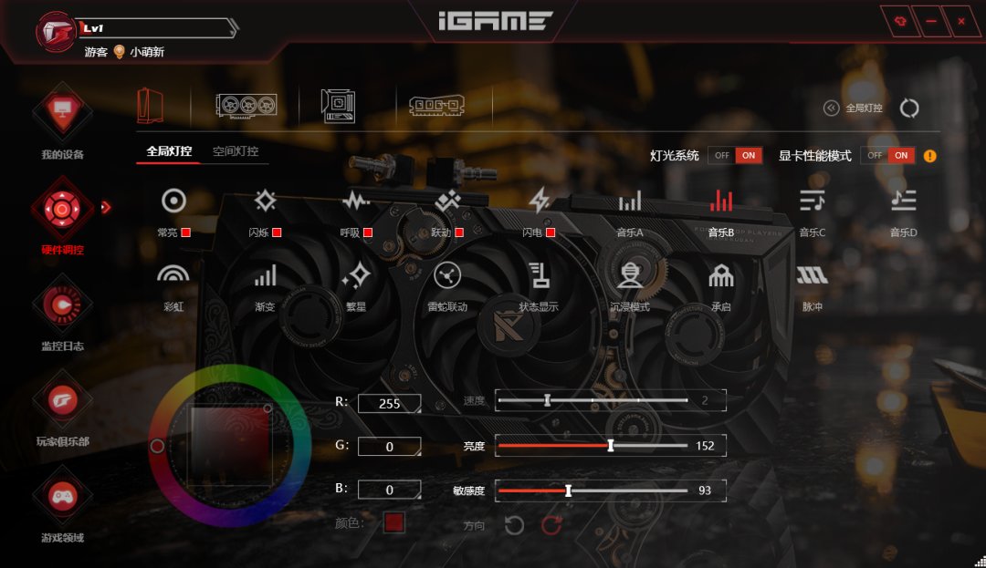 iGame控制中心,RGB燈光的控制效果和方便程度,基本上是第一梯隊的水平,做到了好看又好用的體驗。