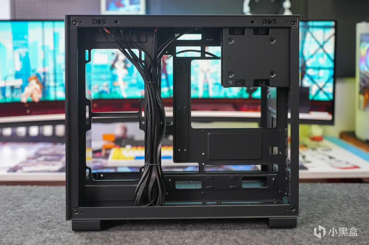 並且因爲支持背插主板的緣故,該機箱的背線空間極大,電源上方還有一個硬盤倉,可支持安裝2個3.5英寸或2個2.5英寸的機械硬盤。電源尺寸最大限制爲200mm。