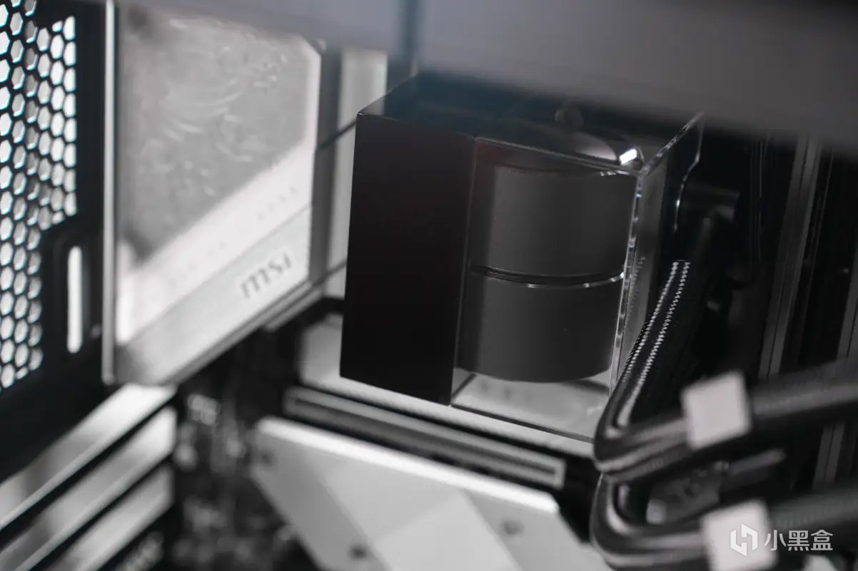 同時,也不難發現,超頻三DS360的水泵其實個人不小,其實這也是全新雙腔體水泵方案,簡單來說就是通過更大的腔體來提升水冷液的流速與流量,從而獲得更好的散熱效果。