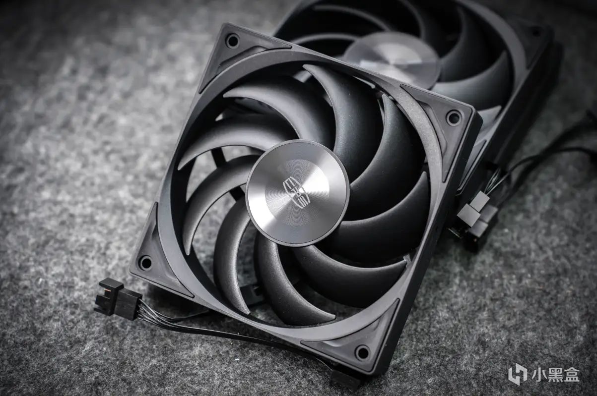 風扇方面,超頻三DS360這次選用的是自家的高性能靜音風扇——F5 R120,該風扇採用了先進的空氣動力學設計+FDB軸承,性能表現與使用壽命都非常不錯。官方數據表示該風扇的最大風量爲86.73CFM,最大風壓也達到了3.2mmH₂O