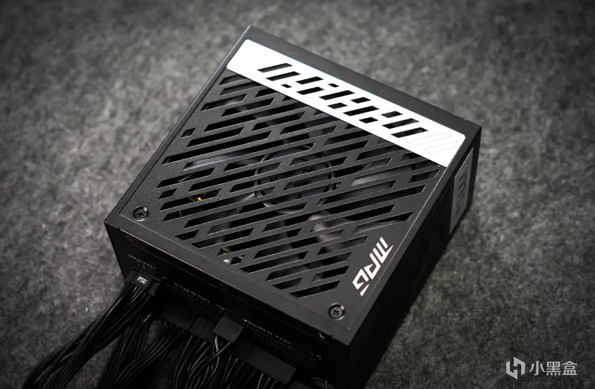 同時,爲了保證整機的平穩運行,電源我也是直接用了微星旗艦級電源——MPG A1000G PCIE5。該電源基於最新的ATX3.0標準打造,搭載了12VHPWR接口,單線支持最大600W功率輸出。規格方面,該電源的+5V和+3.3V的直流輸出爲22A,聯合功率爲120W;+12V的直流輸出爲83.5A,換算功率爲功率爲1000W。