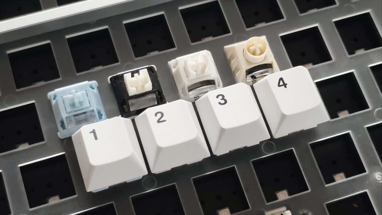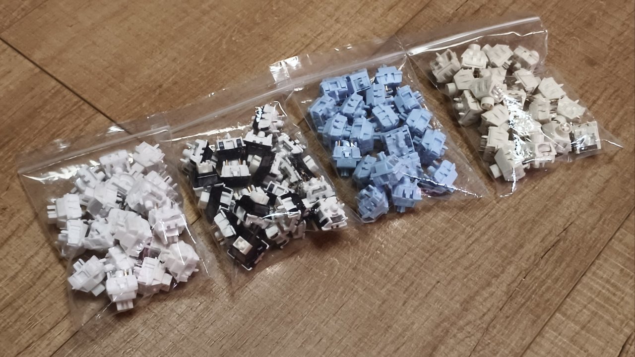 拿到手的時候並不是成品鍵盤,套件,軸體,鍵帽全都是單獨包裝的,也算是客製化吧,讓你自己體驗動手的樂趣。因爲我是測評版本嘛,所以他給我寄了4款軸體,每款軸體20顆,我下面也會爲大家做每個軸體的講解