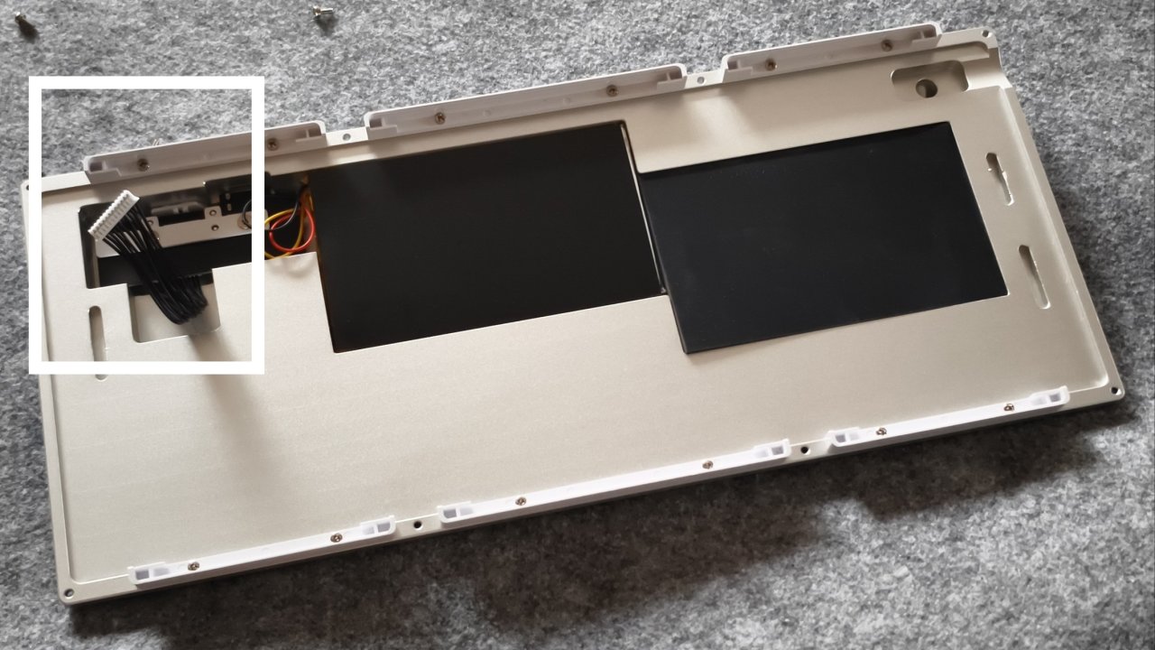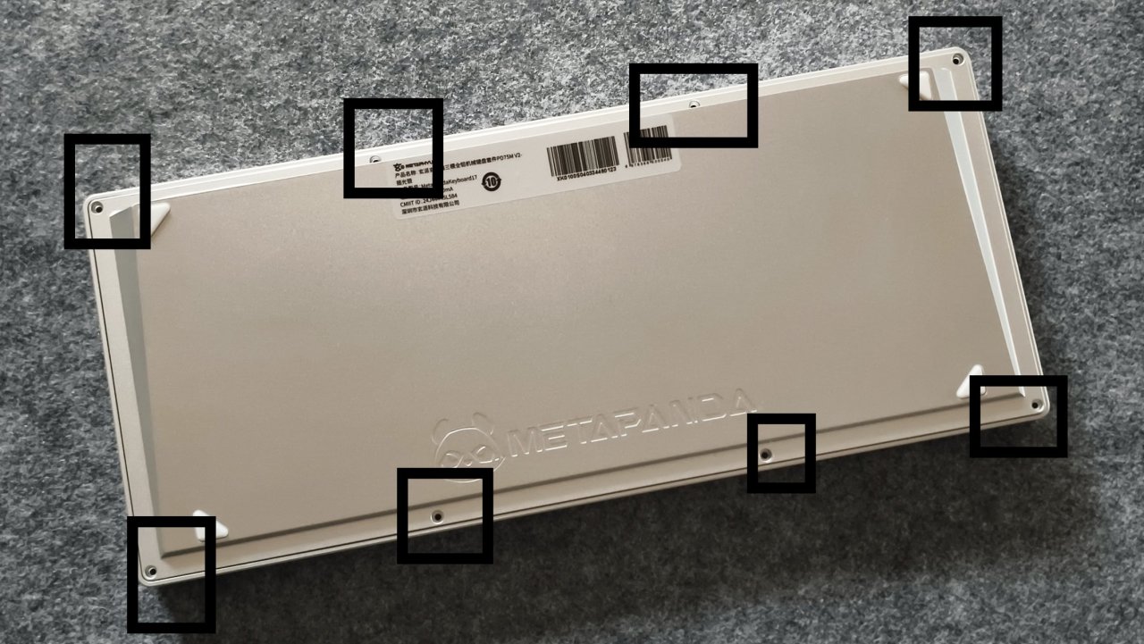 我們下面呢對套件進行一個拆解,看看內部的填充是什麼一個水平。將鍵盤移到側面,你可以看到8顆螺絲,將其擰下來就可以看到整體結構,是不是很簡單