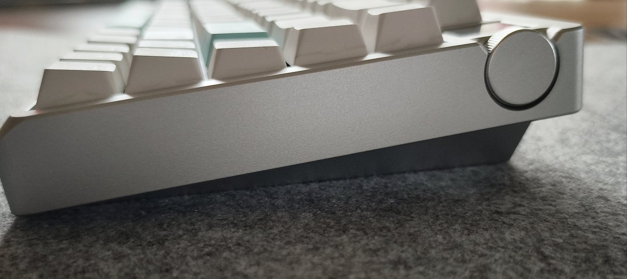 PD75MV2區延續V1版本的75%配列,非下沉方向鍵。並且使用了6063鋁合金CNC精密加工,我手中的這款是搖光銀,因爲使用了180目噴砂陽極氧化,整體的質感十分細膩。在鍵盤的邊角處也做了不少升級,倒角沒有前代那麼硌手了
