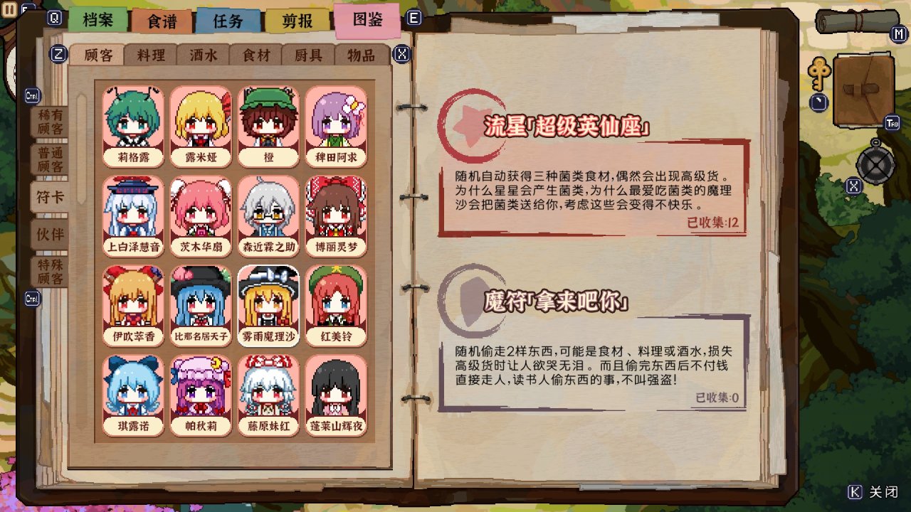 照例说一下通关配置,纯像素独立游戏想必是台电脑都能玩,目前完成主线任务开完演唱会,最后幽幽子大战注意把最好最贵的料理与酒丢上去就完事了。DLC内容没有体验,如果DLC内容有对我后面说的一些问题进行补足的话希望各位盒友在评论区补充。就我这个非东方厨而言,《东方夜雀食堂》可以说做到了满足粉丝受众外,还保证了非粉丝受众的游戏体验。
