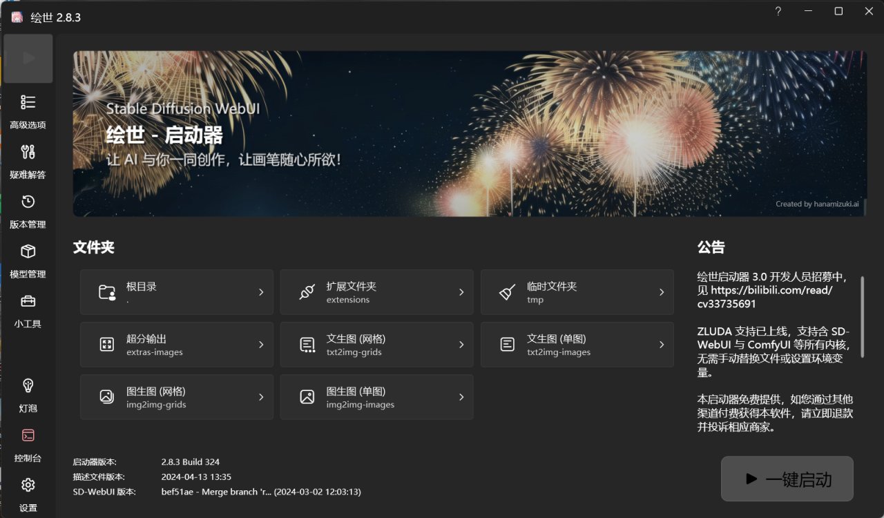 安裝完成之後,可以把繪世啓動器發送到桌面快捷方式,這樣下次直接點擊快捷方式就可以一鍵啓動Stable Diffusion了。