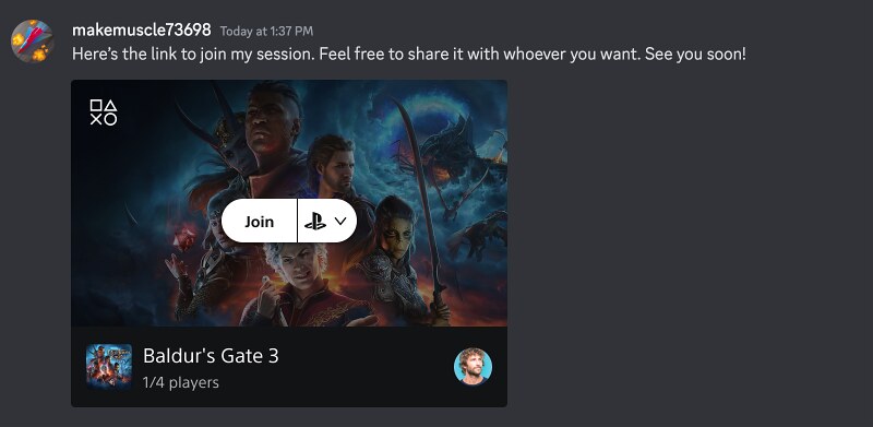 通過 Discord 共享多人遊戲邀請的玩家還可以利用一個新的小部件。該小部件會動態刷新,顯示多人遊戲會話的狀態,以便在加入之前知道會話是否仍然活躍。就像即將推出的邀請工具一樣,這個Discord 小部件也只適用於 PS5 遊戲。
