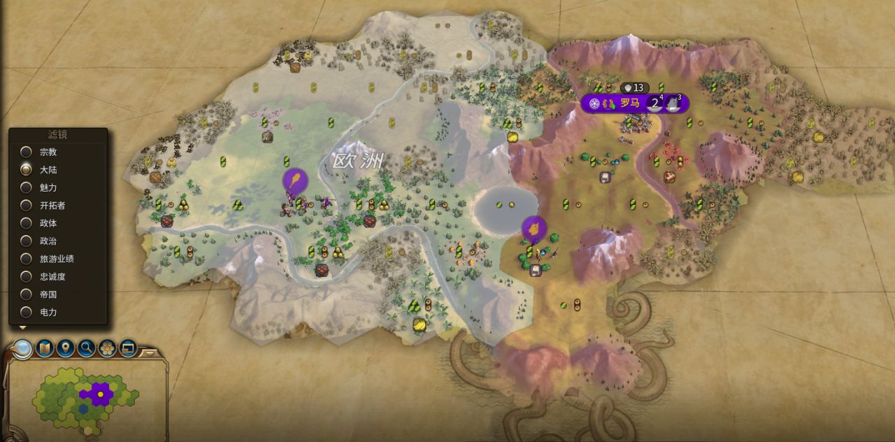 3常用開拓者濾鏡(快捷鍵“數字4”),能讓你更快理解周圍的地,甚至獲得超視野信息(比如任何市中心周圍3環都會顯示紅色,所以看到非山脈的紅色就知道附近有城市)。進階還可以用魅力濾鏡(數字3)進行超視野探圖,本文略。