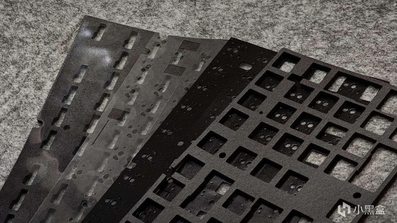 HI98的低配、中配採用的都是橫向開槽PC定位板,頂配爲開槽的沉金FR4定位板,整體聲音表現會更好一些。