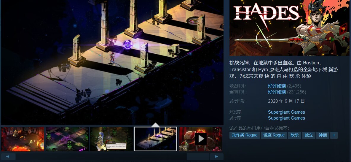 2020年的遊戲,Steam平臺上好評如潮,打擊感和畫面很優秀,重複遊玩性高。