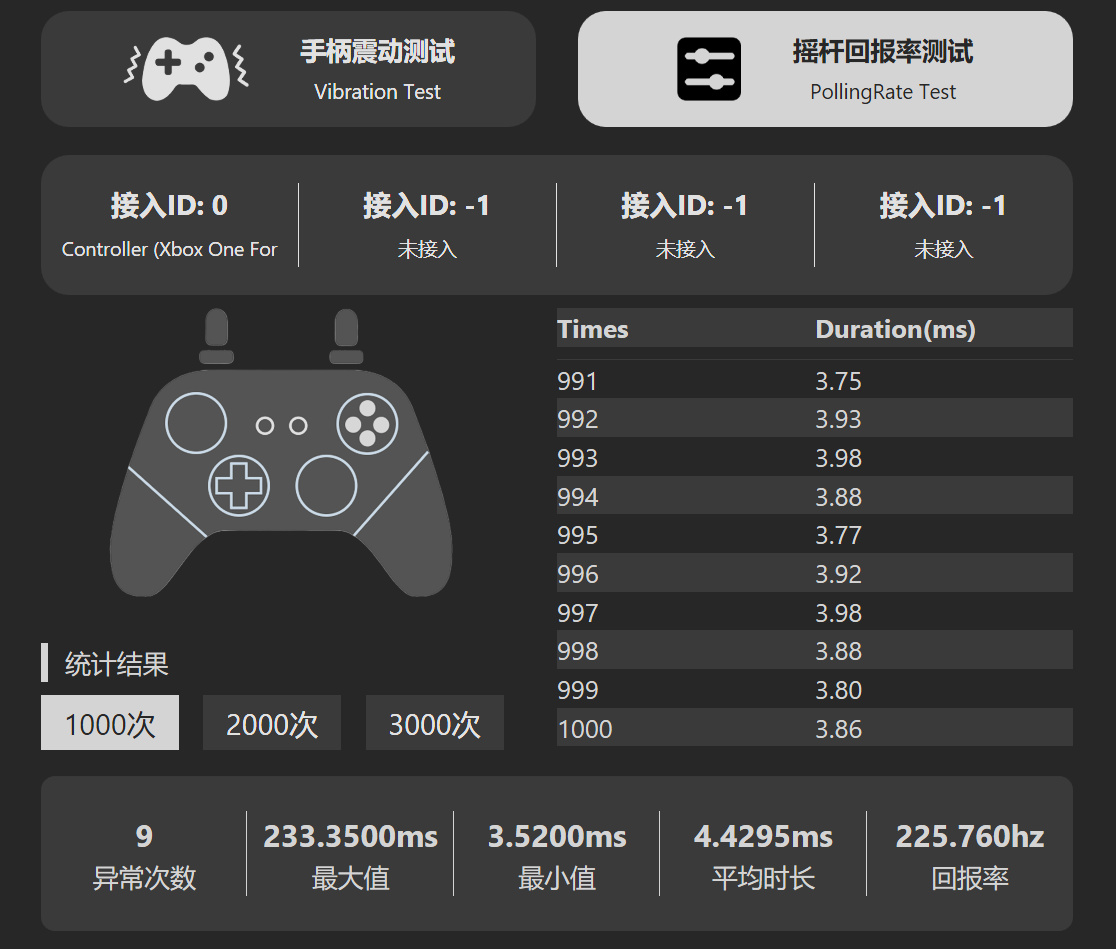 手柄的摇杆为碳膜摇杆,拥有更高的精度,非常适合FPS游戏,转动起来阻尼适中,并且非常的均匀,手柄回报率为225Hz。