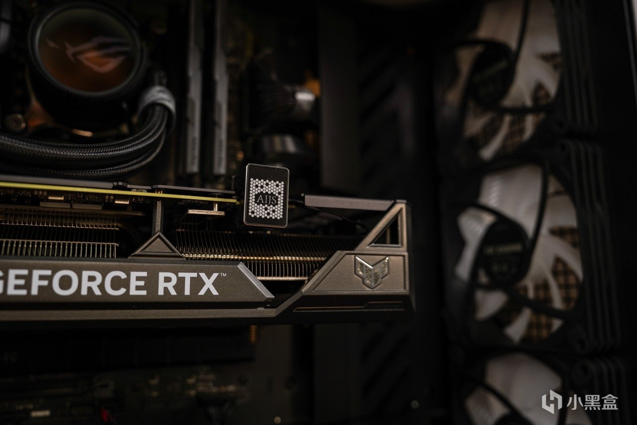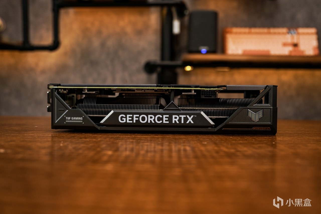 在显卡外观设计上和40系其他款式的TUF一样的军规化的外观设计风格,散热马甲全金属材质打造,哑光黑配色,磨砂的质感,表面 TUF GAMING 英文名及华硕总部坐标点缀。4070/4070S的长度为303MM,而4070TI/4070Ti S显卡整体长度为 305MM,显卡正面搭配三个 Axial-tech 轴流风扇,支持全高阻隔环,能大幅提升静压,另中间风扇与两侧风扇为正逆转动设计,可以减少空气乱流,提高散热气流利用率,并且支持低负载停转技术,在低负载状态下让风扇进入更高效的降噪运行。
