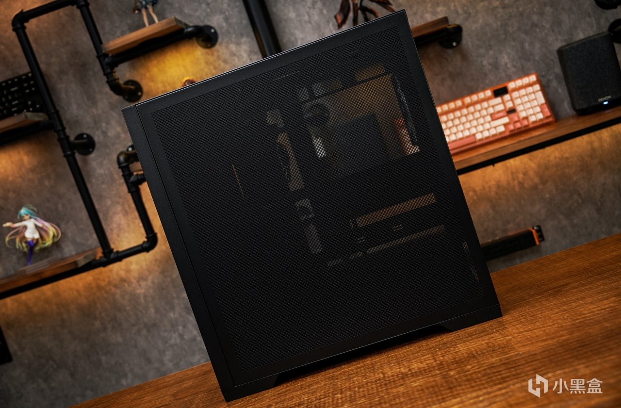 箱体前置和顶部面板面板则是采用8mm方形的开孔格栅设计,因为每一款类似的机箱都有自己的MESH面板的开孔设计,大面积的开孔确实更有利于前置和顶部的的进风和出风的对流增强。拆除所有面板后,箱体里面的安装结构一览无余,新增支持BTF2.0背插的开孔也延续到这款机箱里,双模式的硬件安装可以很好的满足常规硬件和背插硬件的需求。