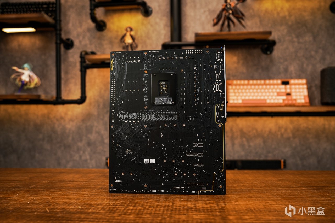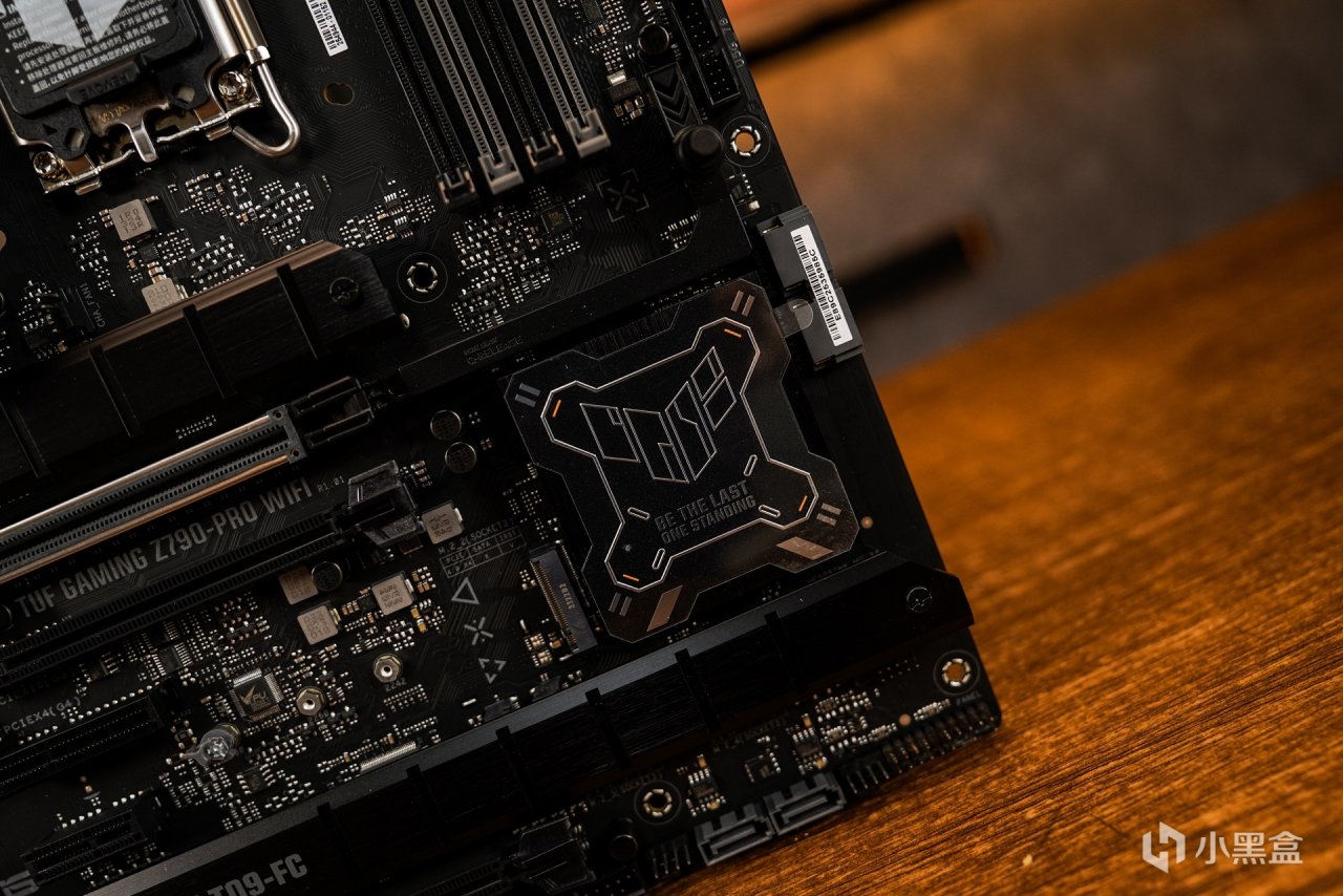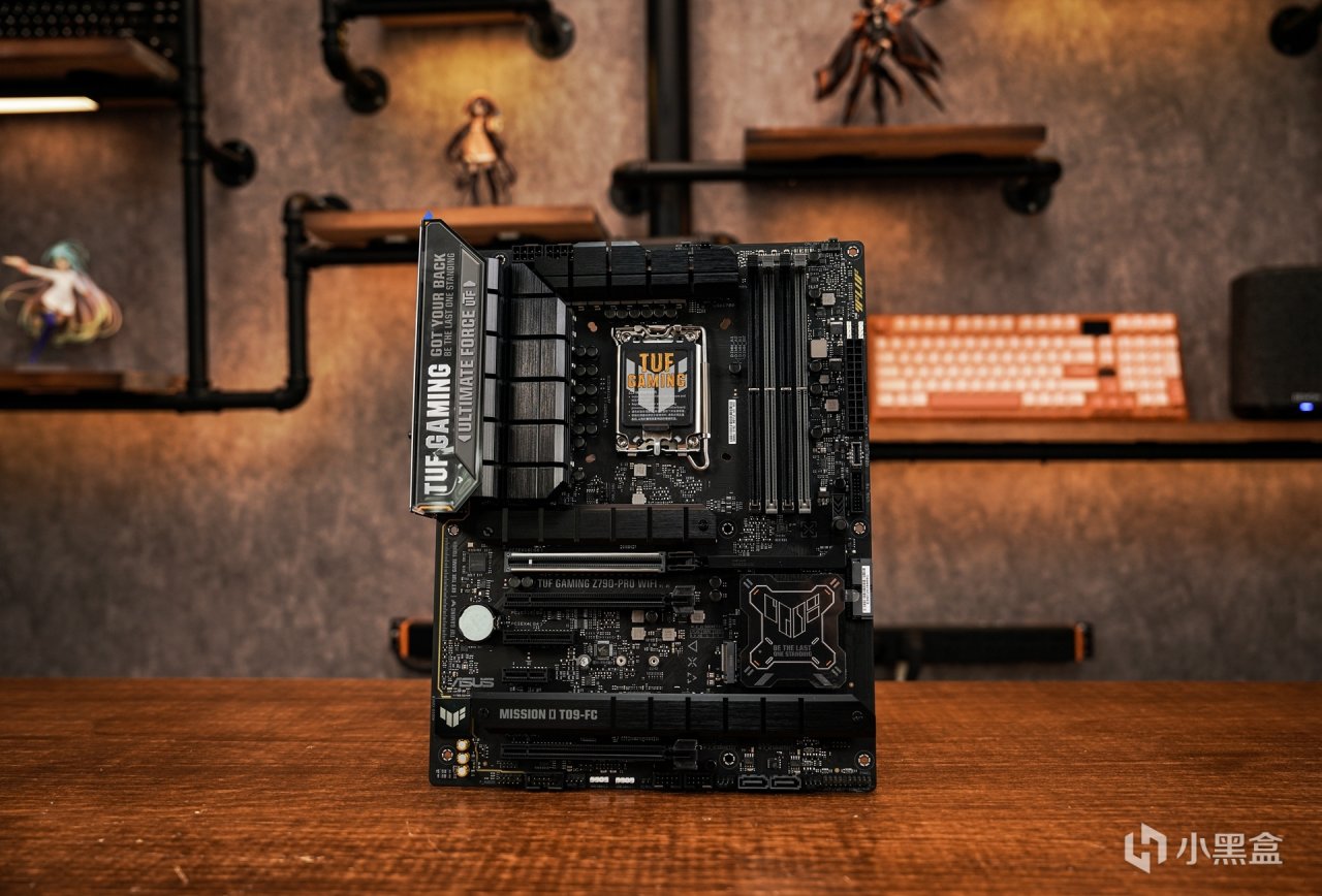 主板方面搭配上华硕TUF GAMING Z790-PRO WIFI D5,可以把其看作是TUF Z790-PLUS的强化升级版本。在主板定位上:走的是中端及主流定位,主打耐用可靠。外观上,两者还是有有各自的不同。板型尺寸都是同属ATX板型。采用极简的几何设计元素来表达TUF GAMING系列主板的硬派形象,采用全新的TUF GAMING LOGO标识,利落的线条大大提升了主板的科技感。