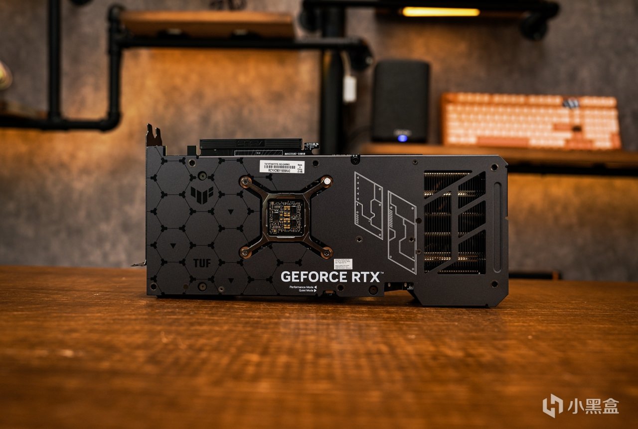 背面的金属背板,也是采用和正面一样的哑光黑配色+磨砂质感漆面,覆盖型均热面板上的 TUF 元素及相关图形文字修饰,尾部大面积的镂空,开孔样式呼应表面图案,形成一个 TUF 图形 LOGO ,开孔可有效提升背面的散热效率。双BIOS设定,对比OC版本也只是相差30的频率差距,这一点点频率性能差距基本可以忽略不计,超频模式: 2640 MHz/默认模式: 2610 MHz (加速)。