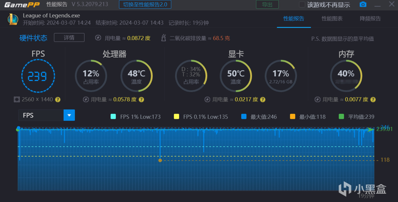 两款主流FPS网游:LOL 平均帧数239FPS,无畏契约 平均帧数 281FPS。