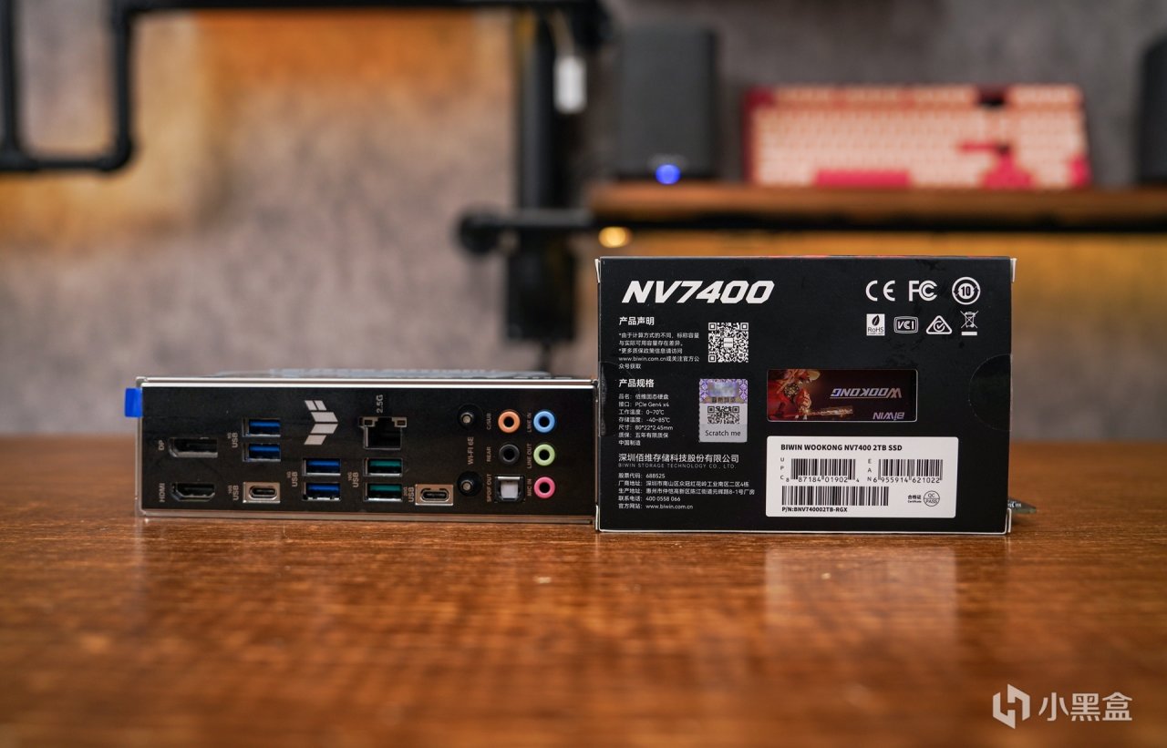 主盘:佰维NV7400悟空 PCIe4.0 2Tb SSD作为副盘。这款悟空系列固态也是延续了国风的命名和设计,用了单面PCB设计,2280规格(长80mm,宽22mm,厚2.45mm)。可满足包含笔电、游戏机、PC设备等多设备的扩容需求,容量分别1TB/2TB/4TB。