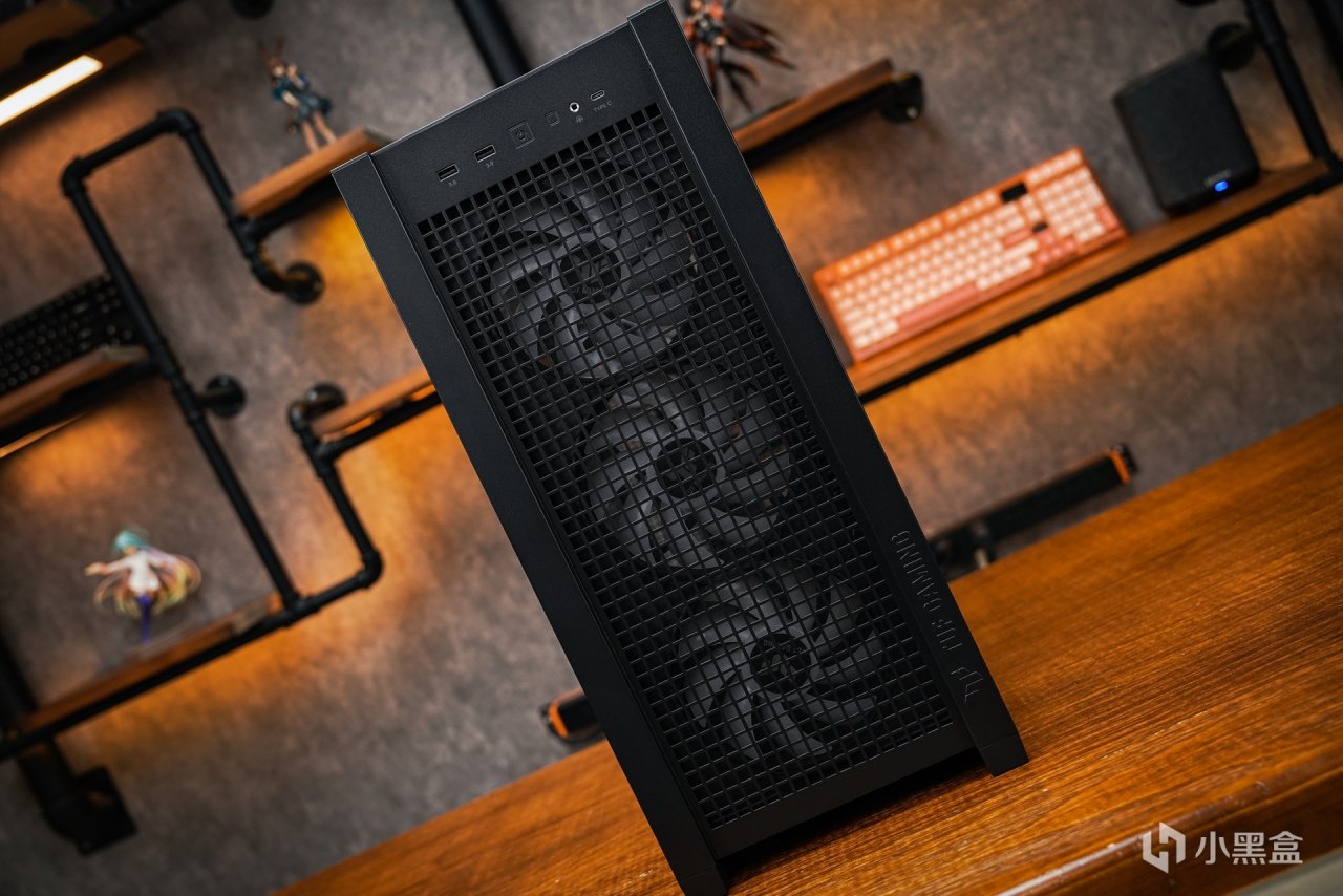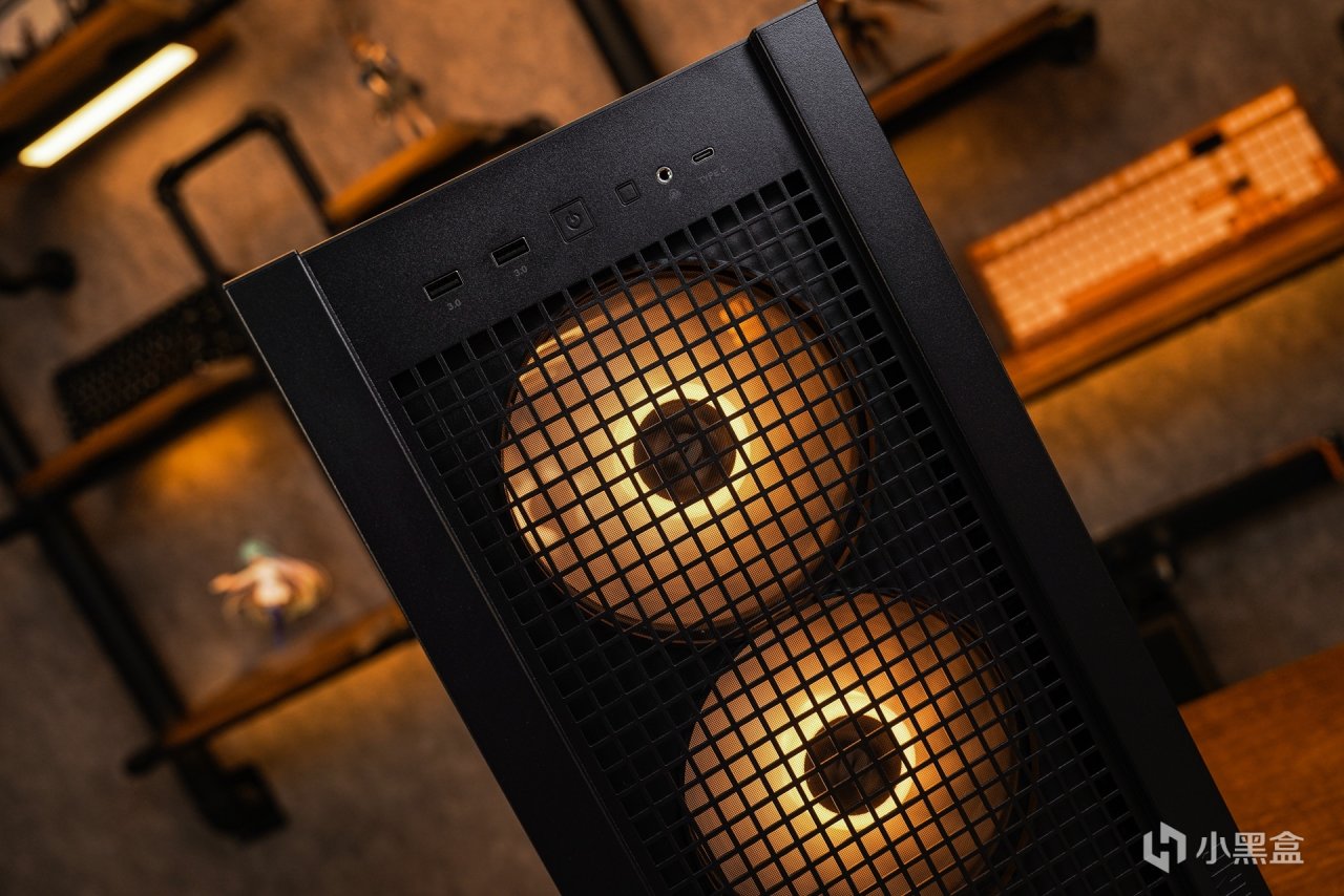 所有面板均采用弹扣易拆设计。机箱散热部分:可以从正面最直观的看到箱体的漆面是磨砂黑,风道设计则是传统的前进后出对流风道设计。机箱标配了4x 140x28 mm ARGB 定制风扇(风压:3.0mmH20,风量:115CM)完全可以给予箱体内部散热提供更高的风压和风量,并且风扇还自带ARGB灯效,可接驳上主板的5V灯控来进行整体的同步调色。