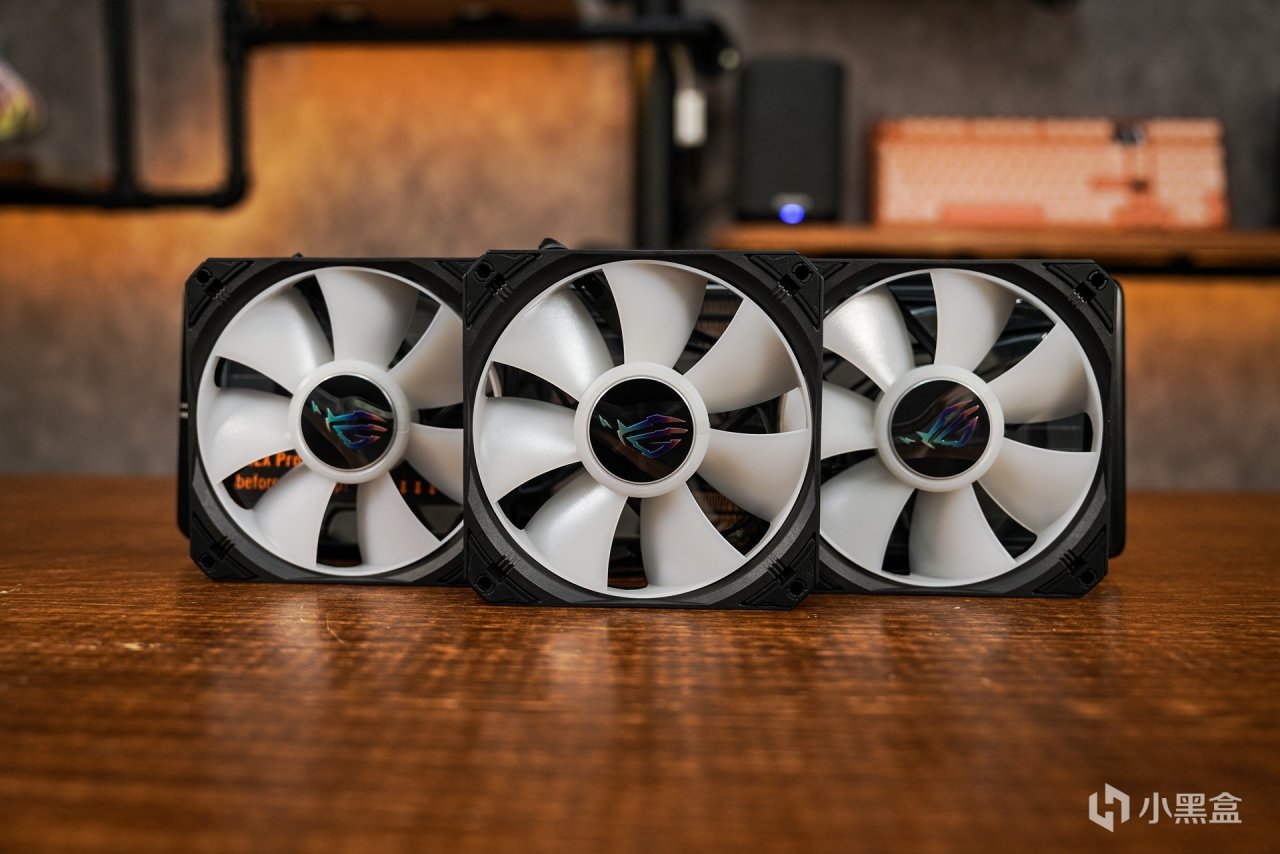 25MM冷排加上华硕新推出的轴流ROG STRIX AF-12S ARGB 风扇,转速800-2200 ±10% RPM,支持在低负载下的停转技术,风压最大可达3.92 mmH20,风量最大可达70.38 CFM,风扇最大噪音为36 dB(A)。