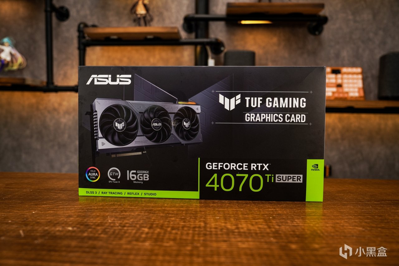 显卡:TUF GeForce RTX 4070 Ti SUPER 16G GAMING。在包装上和其它款的TUF也基本一致,TUF4070Ti S采用的是AD103核心,TDP功耗和RTX4070Ti是一致的均为285W热功耗设定,CUDA核心对比4070Ti 7680 提升至8448。接近RTX4080 85%的性能比例。显存容量提升到16GB,对比4070Ti的12G又有明显的优势,主要还是显存位宽由4070Ti的192位,调整到256位。