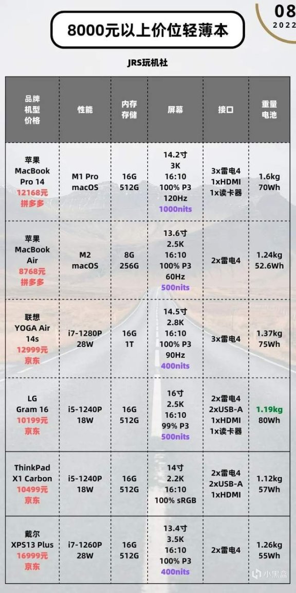 這個價位,還是那些老熟人。今年銳龍依舊沒有衝上高端,高端本仍然以intel 12代酷睿爲主。由於這一代i5-1240P和i7-1260P性能上差距很小,而i7-1280P和i7-1260P差距很大,但是目前幾乎沒有i7-1280P的輕薄本(除了聯想的),因此推薦大家首選i5-1240P的機型,比i7-1260P便宜很多。