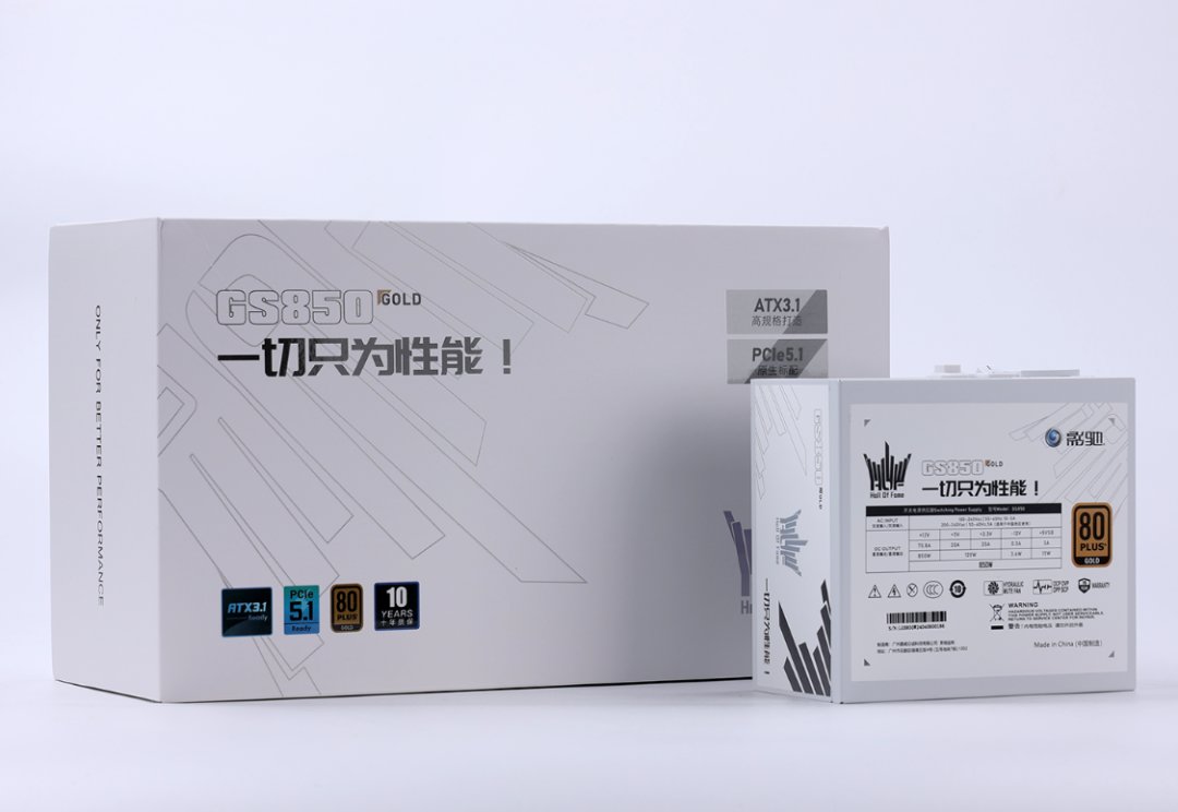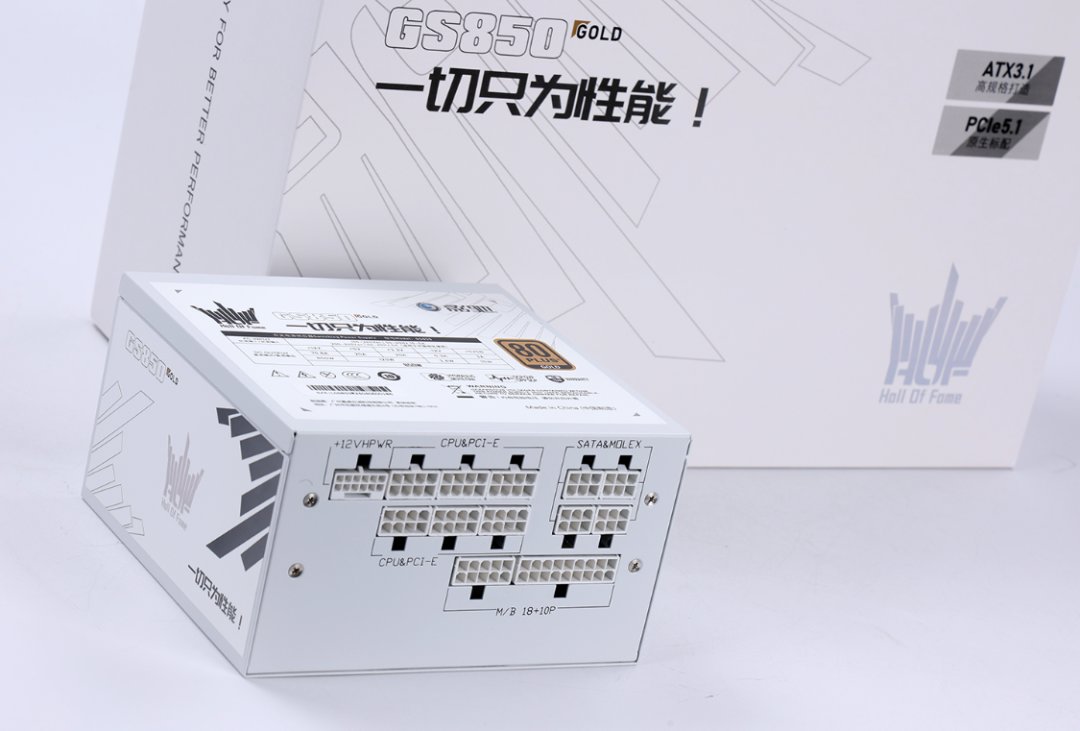 以咱这家底,你要全白信仰咱分分钟可以安排好配件,但是要黑色电源也真的有点为难。不过为了表示对今儿这台主机的尊重,还是特地选择了新近入手的这款影驰影驰HOF GS-850金牌全模组电源。支持最新的ATX 3.1电源规范和PCIE 5.1电源标准,自带12VHPWR模组线最大可提供600W供电。