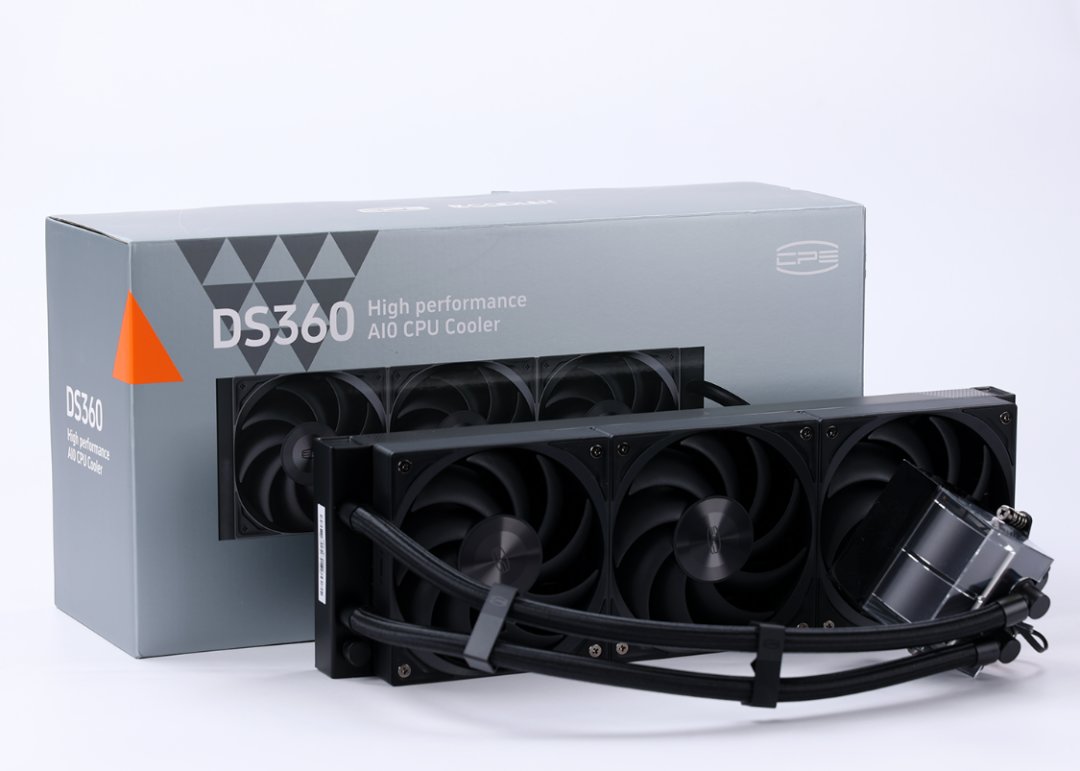 都i9了,散热当然也不能拉胯,但咱要高颜值又要低调,所以选择了这款超频三DS360黑色一体式水冷。深空灰底色包装搭配炫酷的水冷本体渲染图,质感表现优秀。
