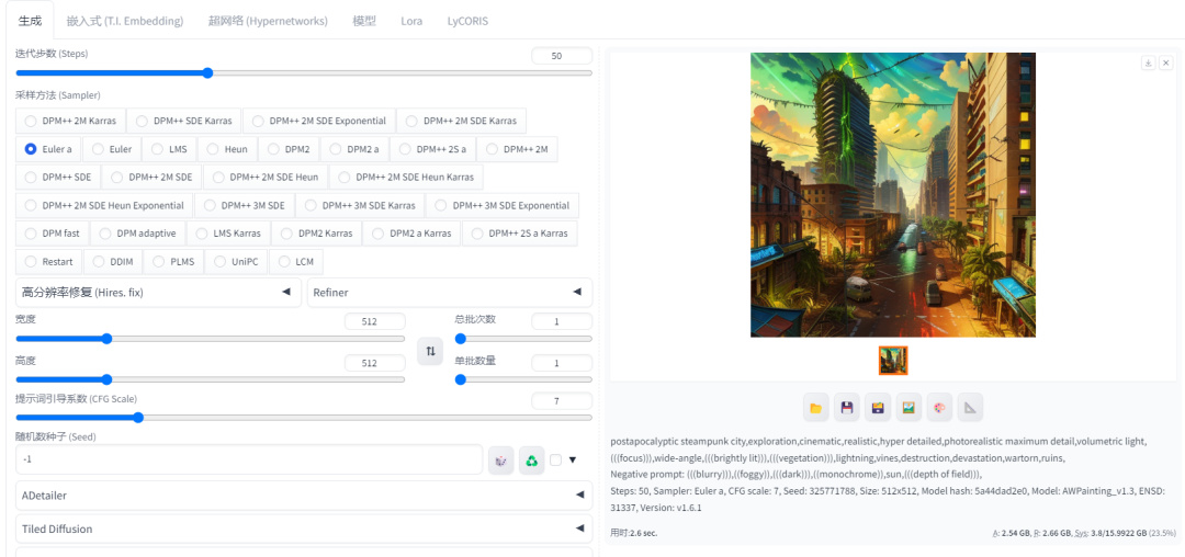在不开启Tensor RT加速引擎时,显卡生成1张图片耗时为2.6秒左右,而开启Tensor RT加速引擎后,显卡生成1张图片耗时则为1.7秒左右;