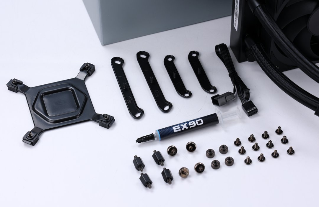 全平台扣具,搭配1管导热系数可达14.8W/(m·k)的EX90导热硅脂。