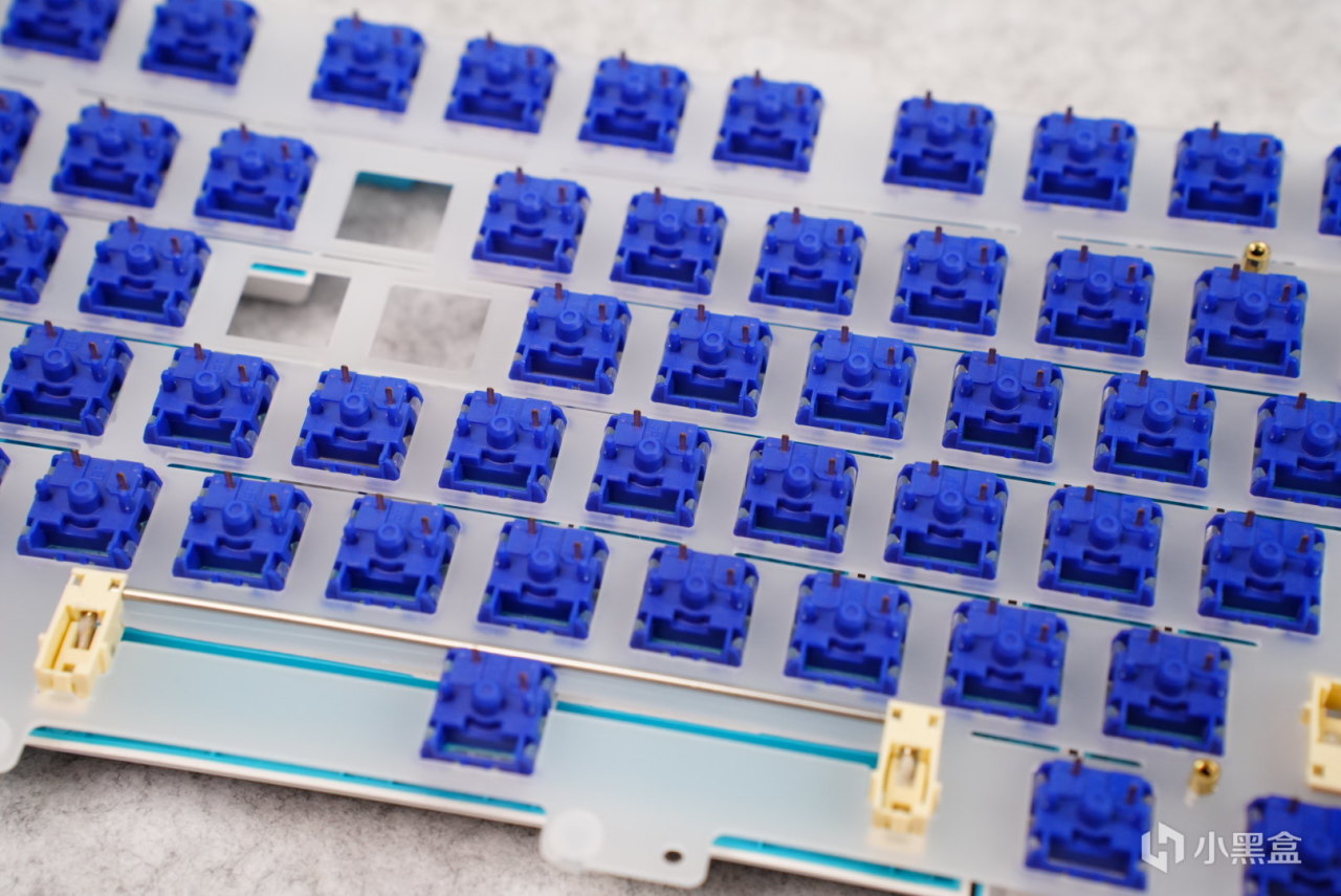 定位板方面才用了一个pc材质的定位板横向开槽的工艺让键盘整体的手感变得更好,同时使用自家的钢板卫星轴,大键可以说是出厂即用,不用调不用换的一个程度。