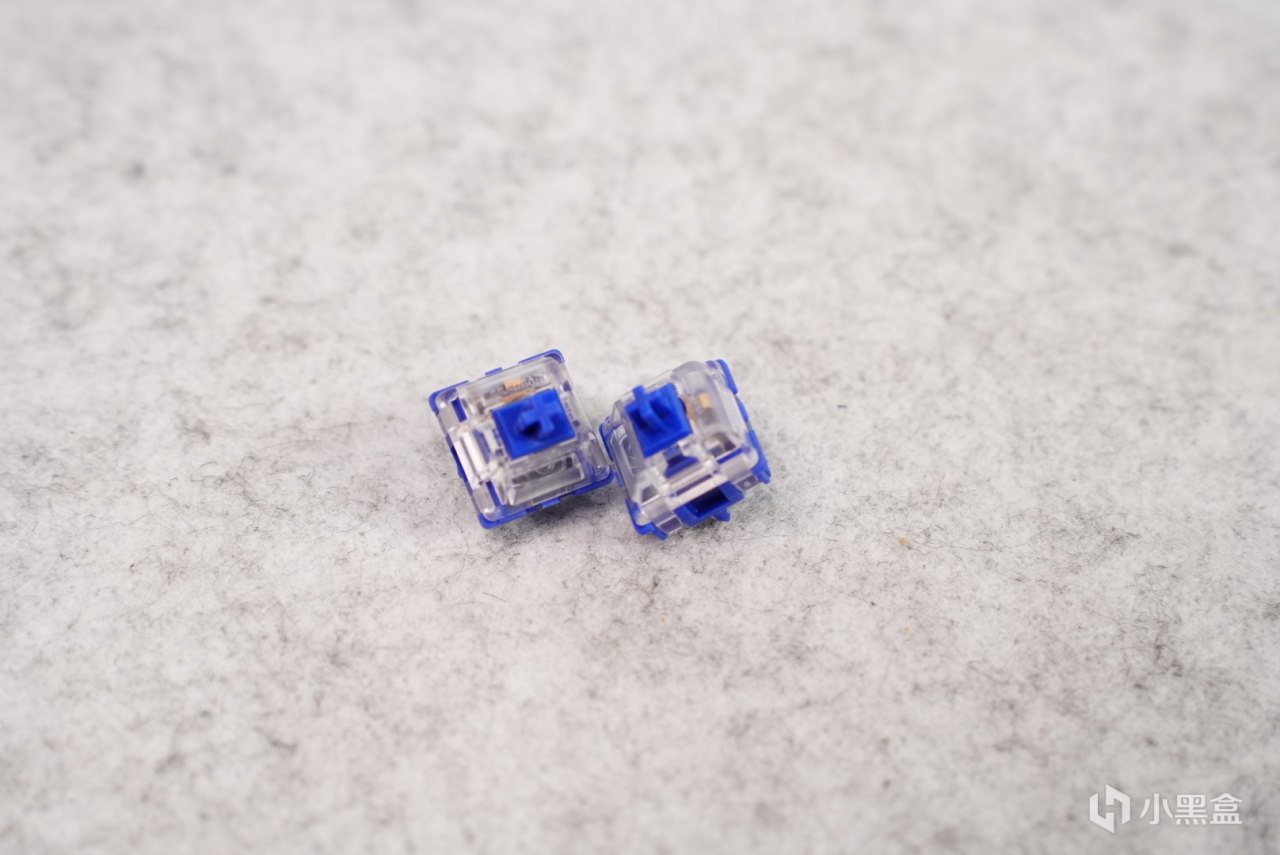 轴体方面采用的是佳达隆定制的多巴胺蓝轴,先来看参数:pom轴芯 pc外壳 45g触发 2.0触发行程 3.6总行程属于一款提前触底的轴体,我上手的感受就是有点类似于佳达隆的那个3.5一颗的探月轴,但是手感比那个探月轴还要肉一点点。