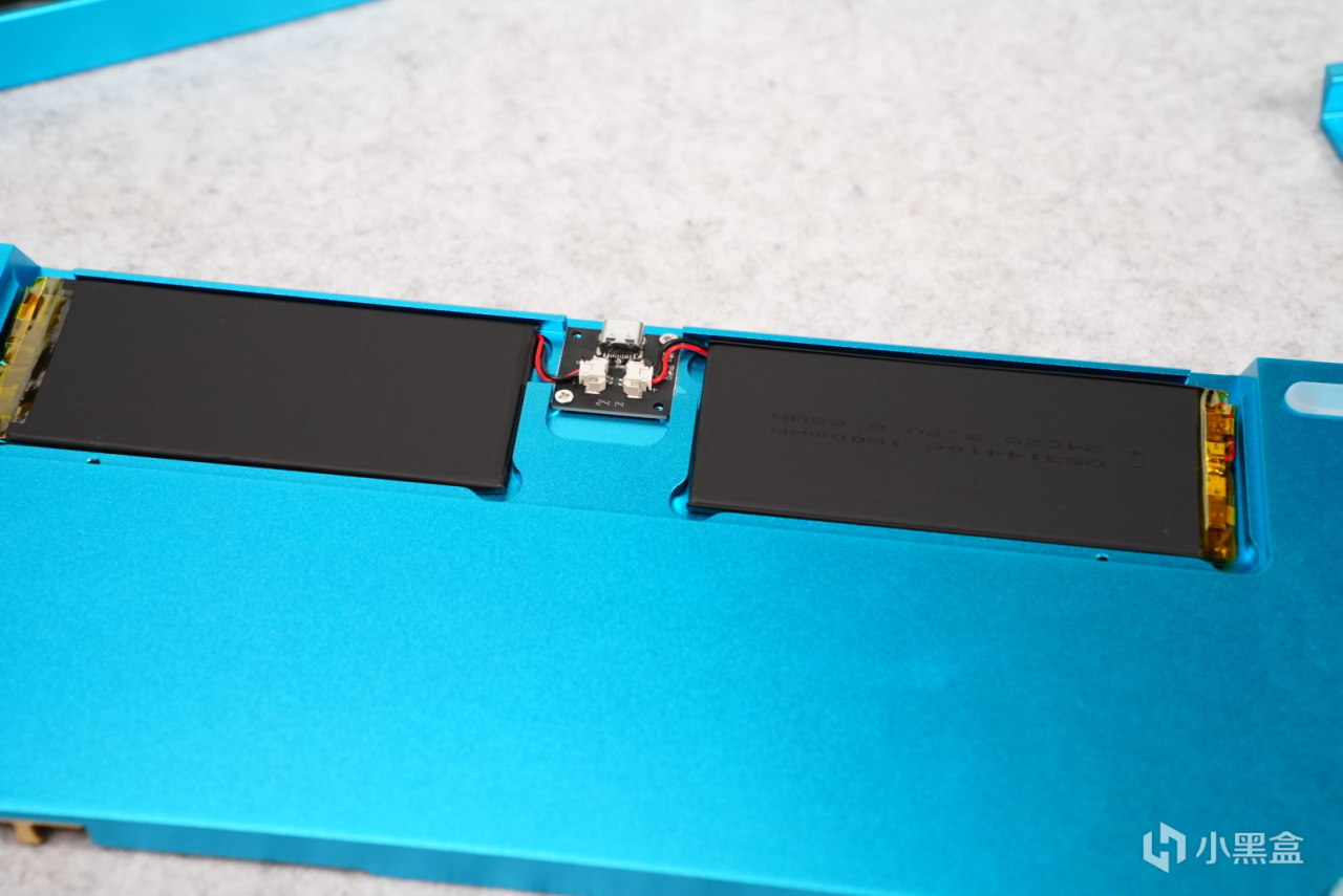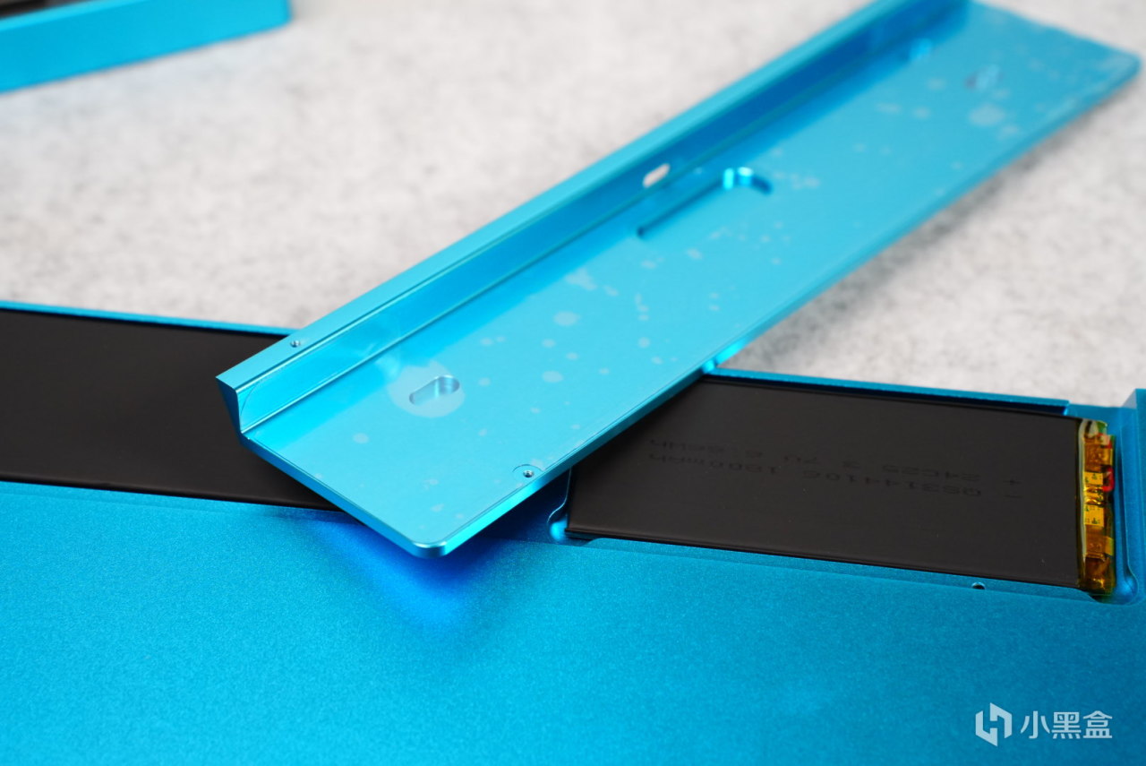 键盘的电池仓设计在了键盘的配重上方,做了一个隐藏的处理,这个处理方式,讲真,不错的。直接隐藏起来,在拆卸键盘的时候不会感觉很丑。