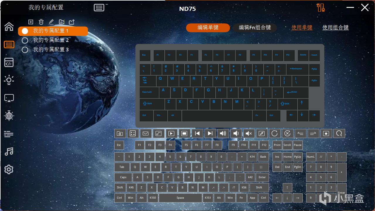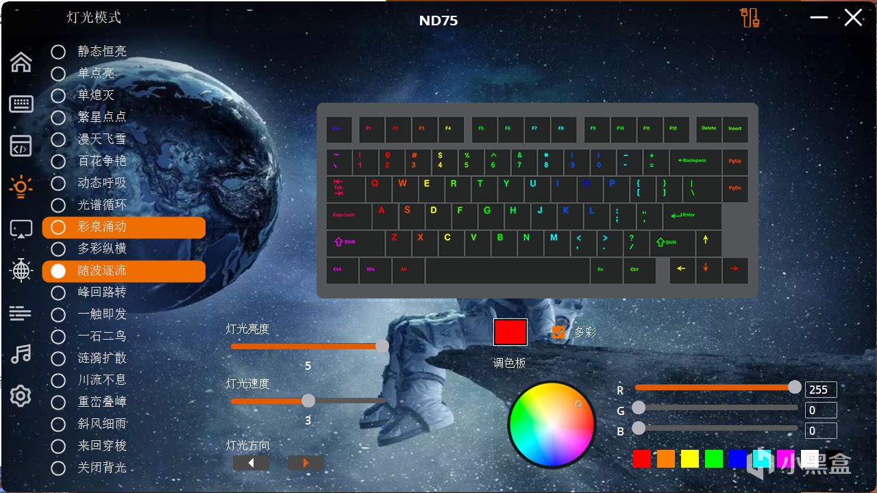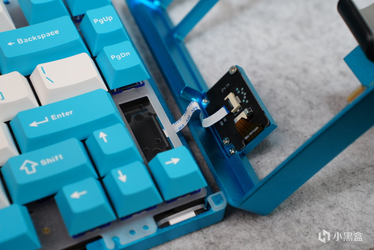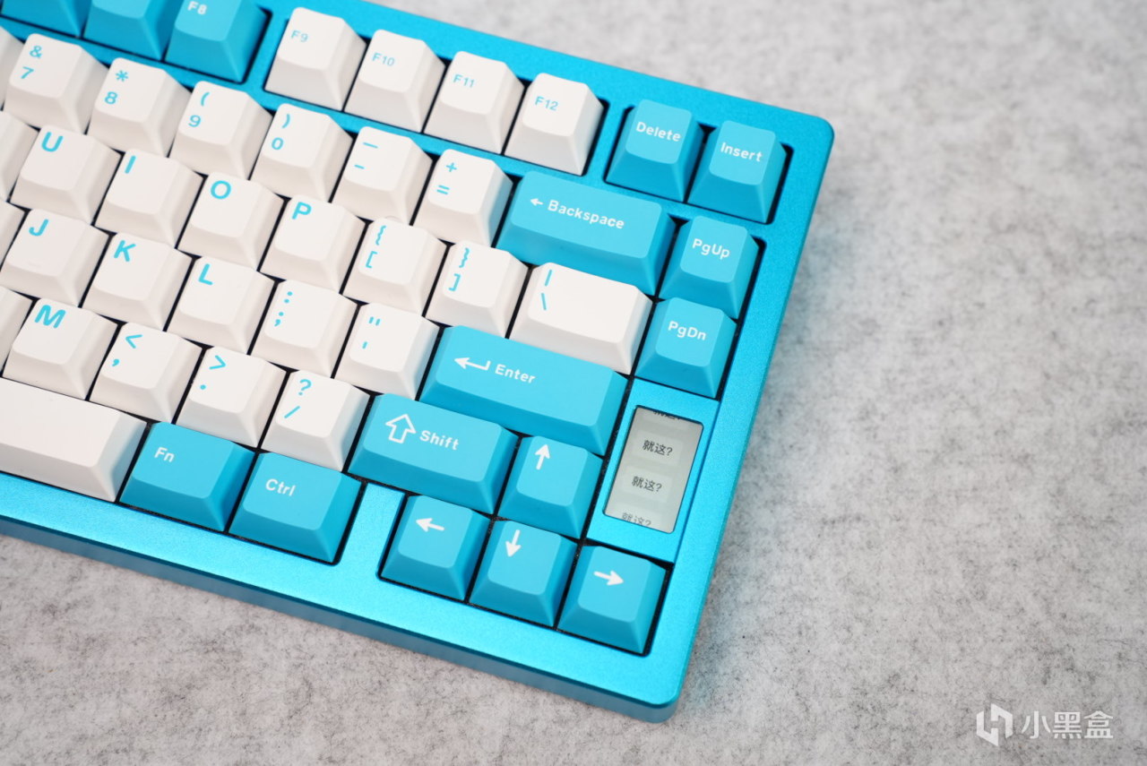 键盘总共四个颜色,分别是白色,蓝色,紫色,黑色,我这里因为没有用过这个蓝色,之后我直接的就要了一个蓝色。怎么说感觉真的很烧!!!选对了!键盘右侧设计了一个小屏幕,这上面可以自定义图片等等功能
