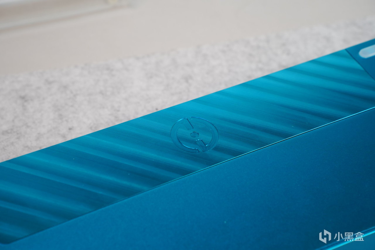 键盘背面设计了一个独特的阳极纹路,同时在上面阴刻了品牌的logo。