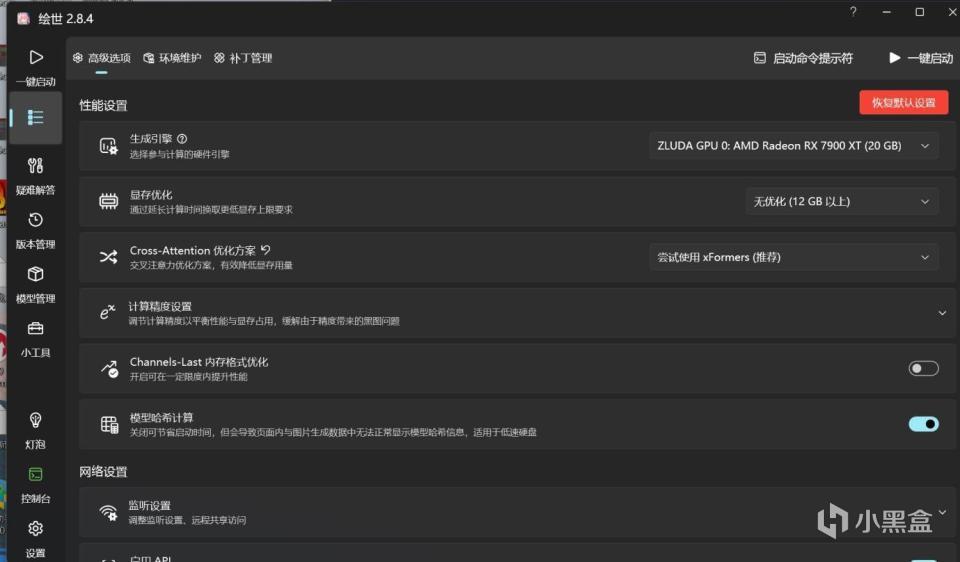 感谢“秋葉aaaki” 大神,使用的是他做的针对 SD的整合包,那么运行后在设置里,可以看到生成引擎,可以选择为ZLUDA GPU 0:AMD Radeon RX7900 XT(20GB)。