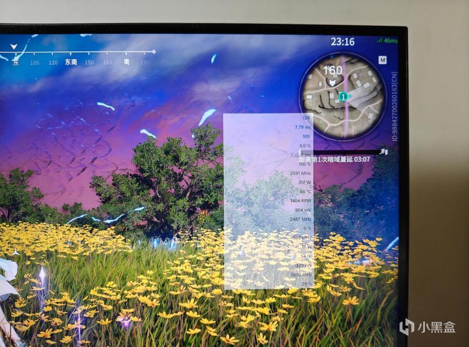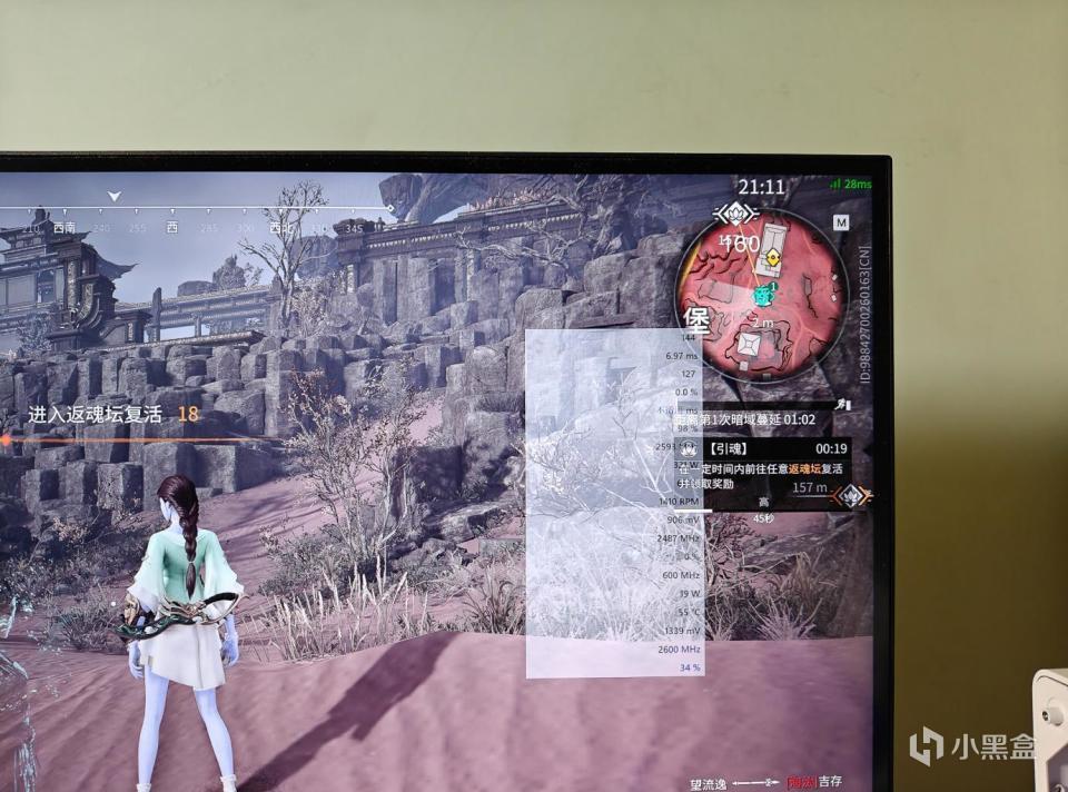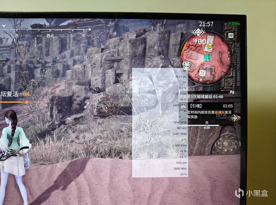 我们来看这个画面,是比较稳定的,然后通过这个A卡的监视面板,可以看见显卡的各种信息,也包括帧速。我们看这个时候,是98帧。