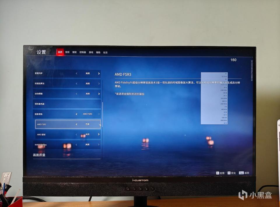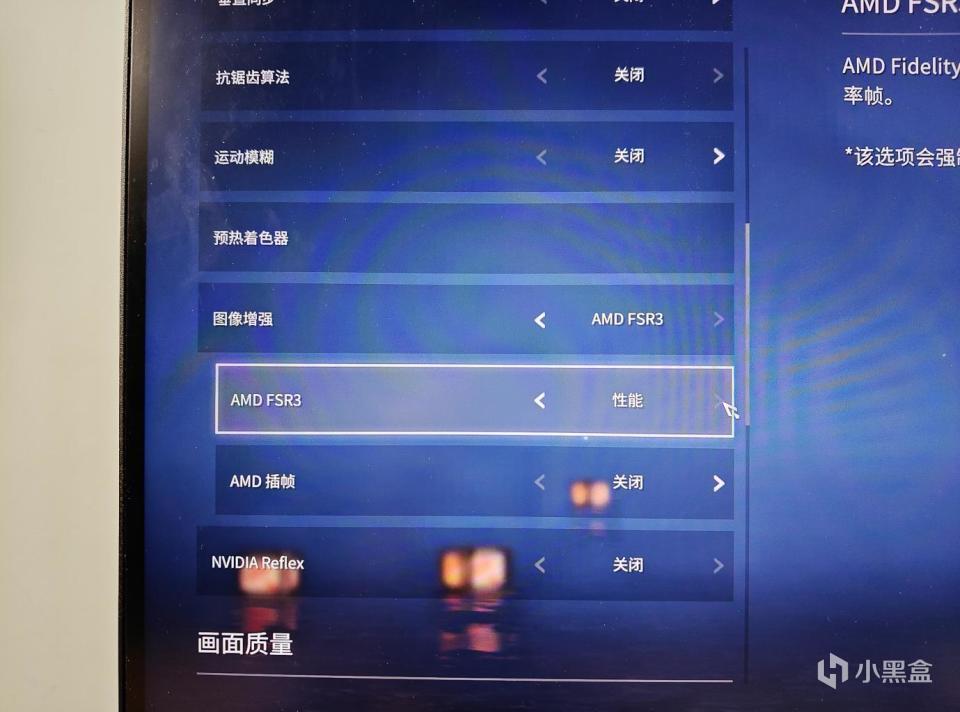 然后我们到这个游戏的设置界面里面,开启这个AMD FSR3的选项,选择性能模式。注意看下面有个AMD 插帧,这个目前是关闭的。