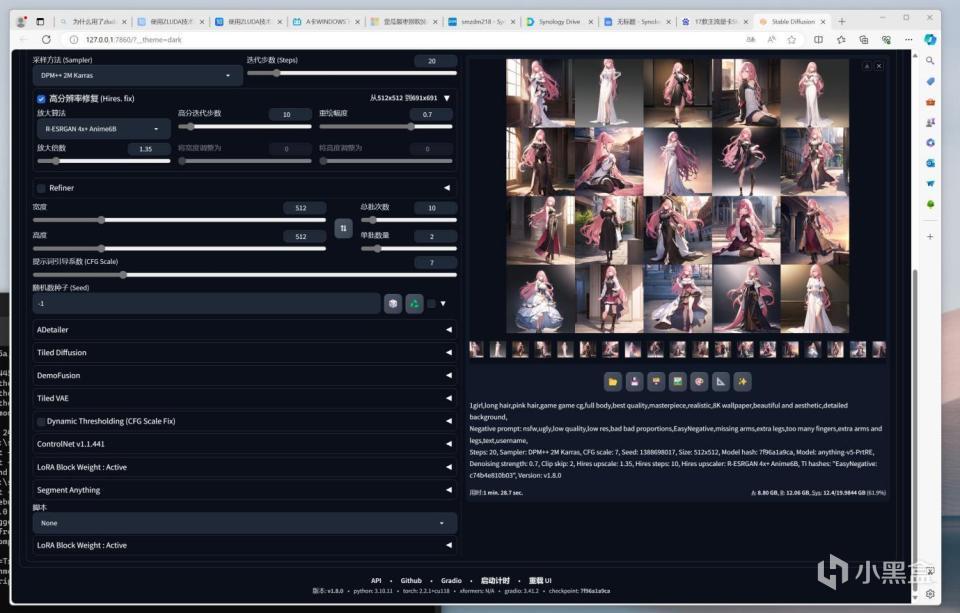 那么现在使用了ZLUDA后,同样的提示词、要求下,20张图的出图速度是用时1分28.7秒,合集88.7秒,比起前面的231.6秒,速度提高了将近3倍。可以看出,A卡同样具有强大的AI生产力。