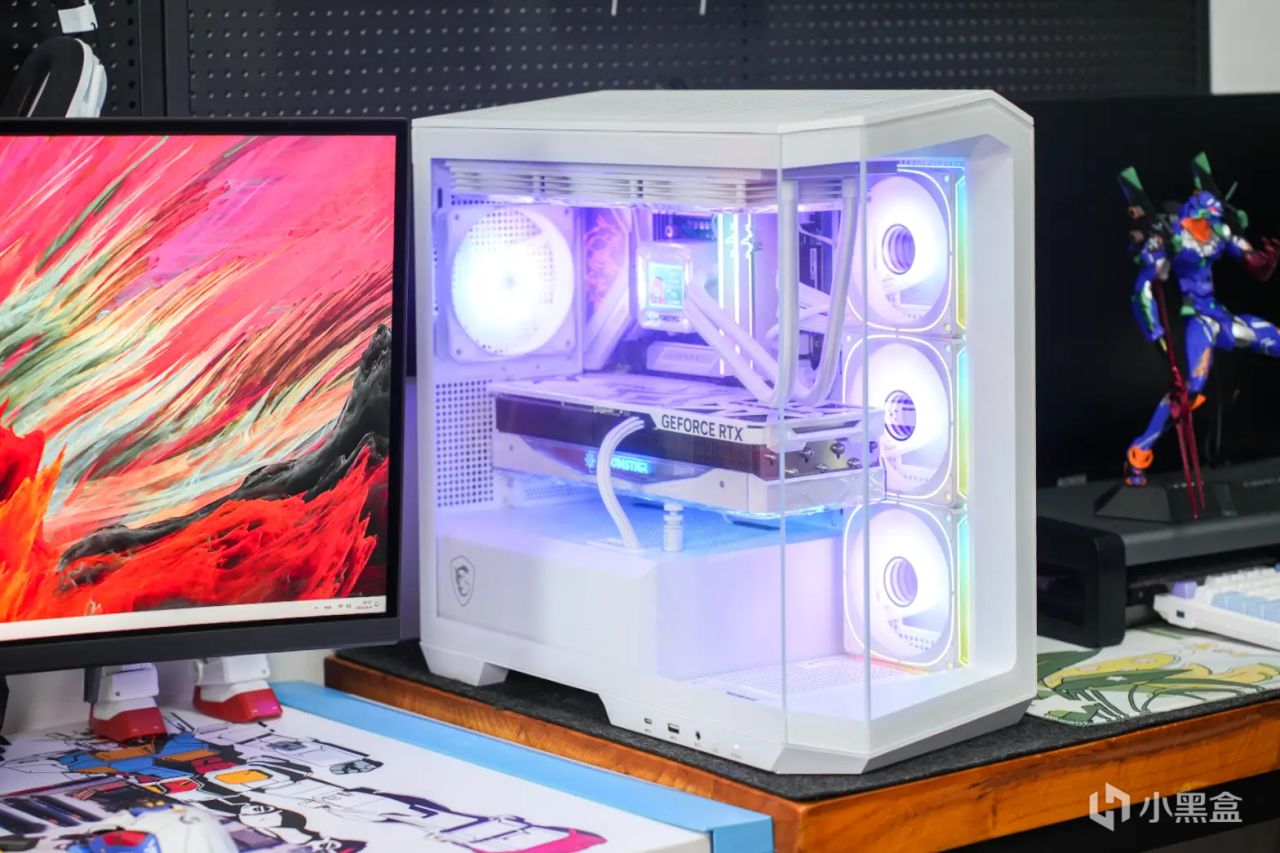 機箱方面我用的是微星MAG PANO M100L PZ WHITE 白刃,該機箱的賣點就是支持背插+3面無立柱側透海景房設計。對比傳統機箱方方正正的設計,前面板上的切角設計會更彰顯個性化,呈現出的270°的可視效果也更加吸睛。