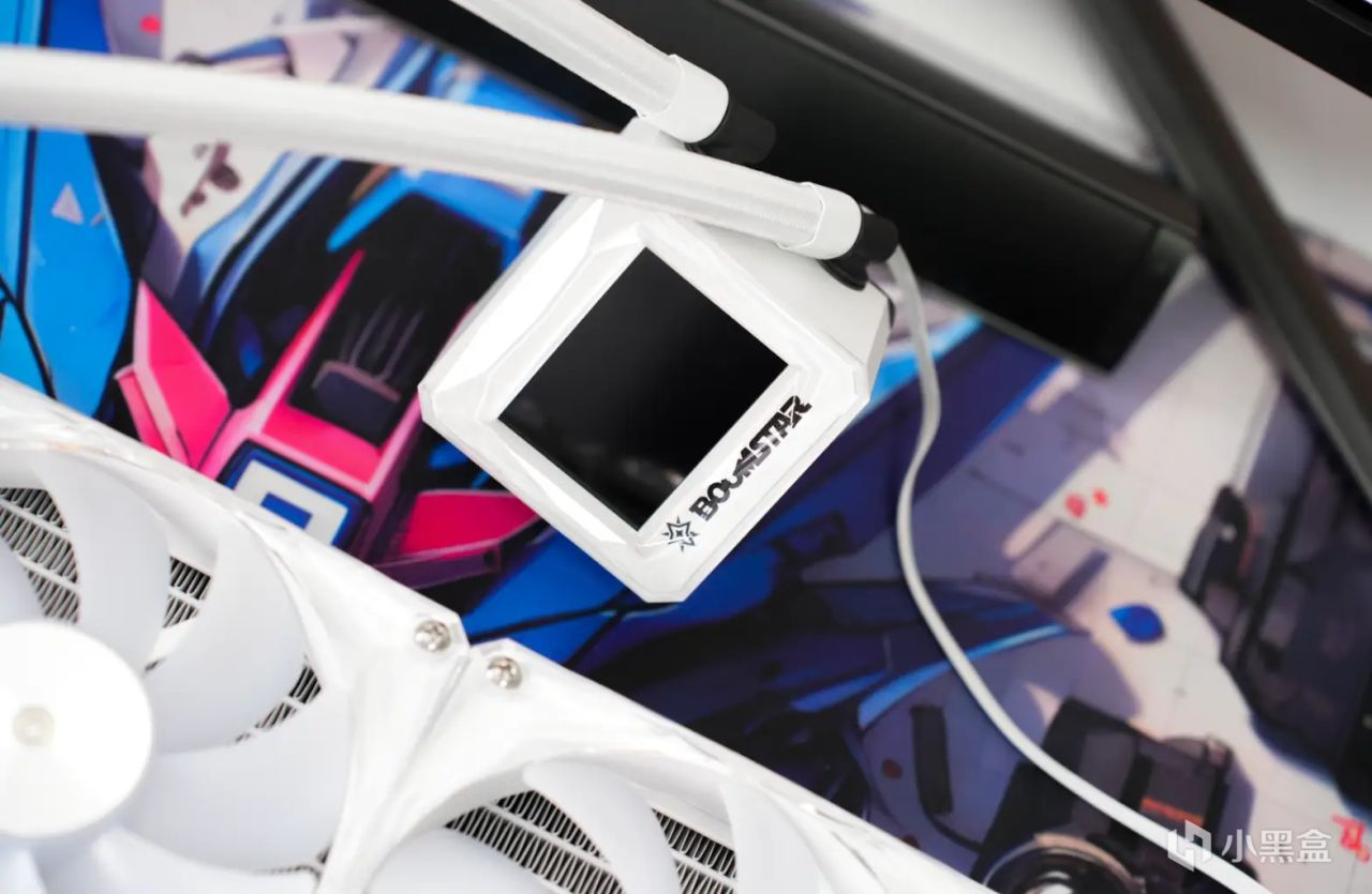 水冷頭的亮點除了搭載了一個2.4英寸的IPS屏幕,內部的馬達方案也值得一提,其採用了三相九極高速馬達,最大轉速可以達到3000RPM,搭配改進款仿生型葉輪,可進一步加快水冷液的循環,提高散熱效率。