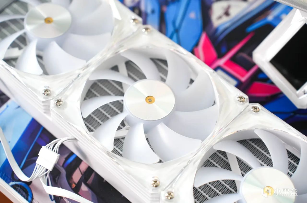 冷排也經過優化,採用的是高密度低水阻S型散熱鰭片,鰭片的厚度達到了20mm,配合水冷頭和高性能風扇,性能表現也可圈可點。