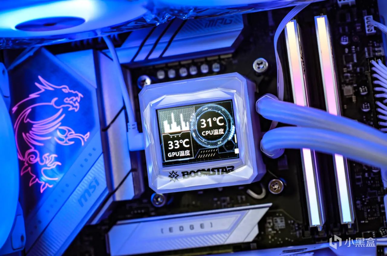 影馳星曜G360水冷散熱器安裝效果圖,剛好我這次安裝的也是微星純白全家桶,使用的主板、機箱都是微星出品。