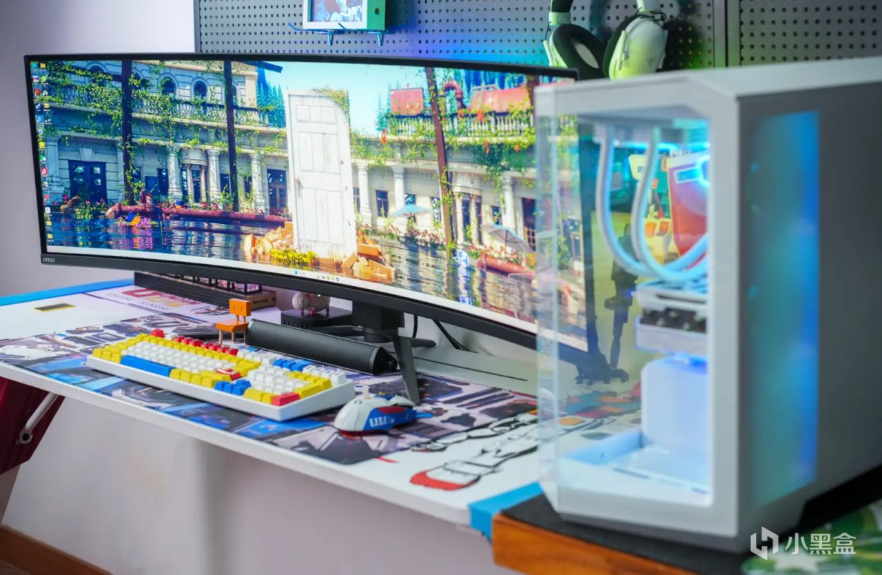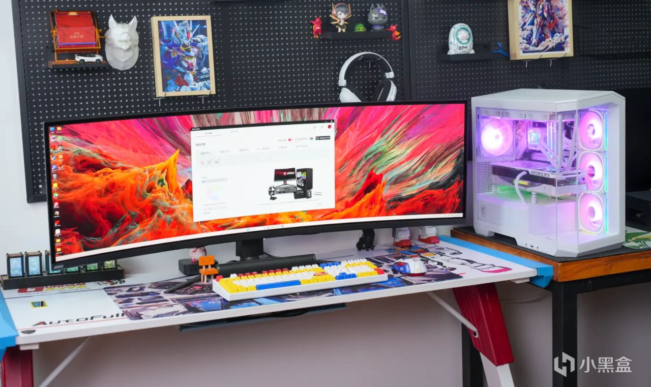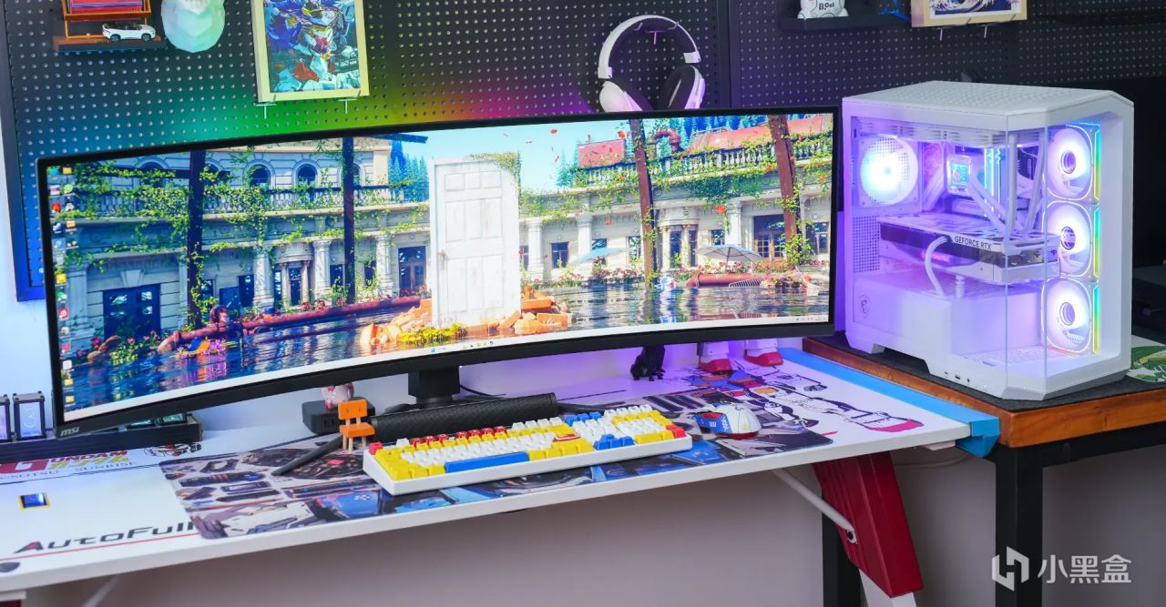 可以看到上面的遊戲截圖,很多小夥伴都會覺得非常扁,這是因爲我用的顯示器是微星MPG 491CQP QD-OLED。該顯示器也是目前我用過尺寸最大,素質表現最好的顯示器(沒有之一)。要知道該顯示器搭載的是新一代QD-OLED面板,具備32:9超寬比例、1800R曲率、分辨率爲準5K(5120*1440);同時還具備144Hz高刷、1000nits峯值亮度、DisplayHDR True Black 400認證等,遊戲體驗直接拉滿。