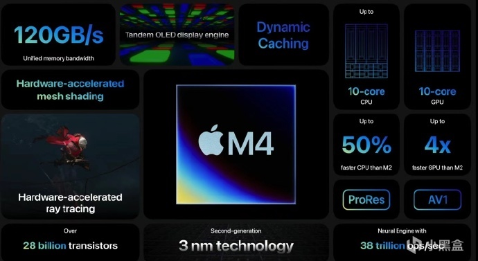 在今天的蘋果發佈會上,蘋果官方發佈了最新的M4芯片,M4芯片由 280 億個晶體管組成,採用第二代 3 納米技術構建。