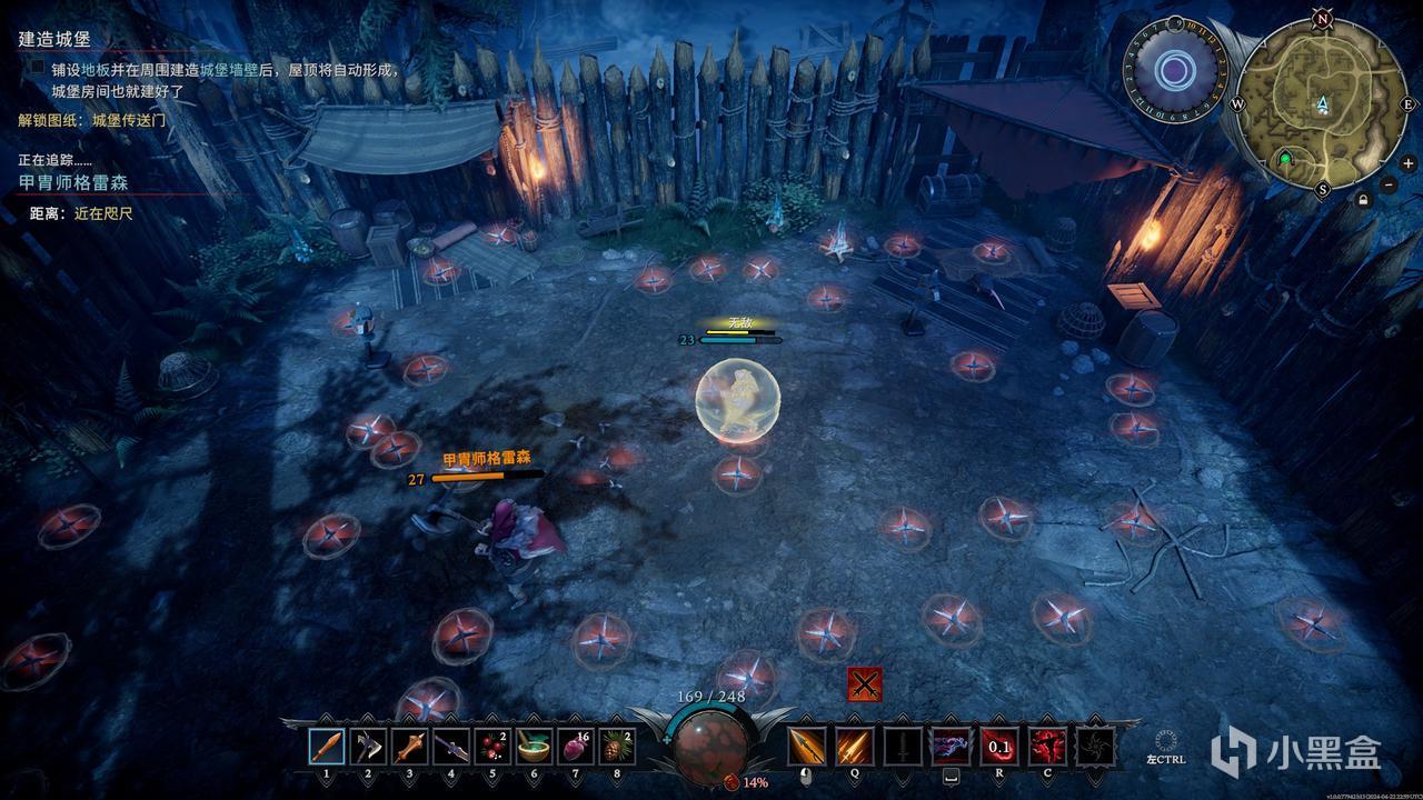 這其中的特色在於兩點——第一是有很多“血與骨”的特色用途:比如作爲吸血鬼我們暴露在陽光底下5秒之後便會遭遇高額的傷害,城堡想要“封頂”需要全地板+牆壁,我估計至少是10小時之後的事情,那麼在白天應該怎麼辦呢?可以在影子間隙夾縫求生,比如在樹木的影子後面採礦;可以在棺材睡覺掛機;還可以就是燃起骨火盆,用燒出來的煙霧提供一個安全的空間。