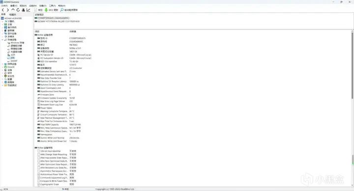使用AIDA64测得英睿达T500采用的颗粒是镁光的,支持支持NVMe 2.0协议,看得出厂家没有虚标。