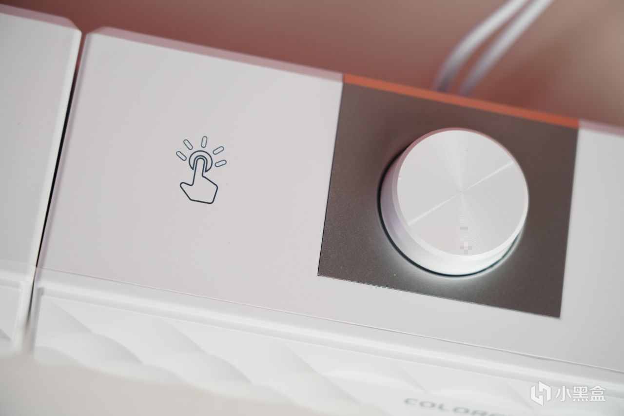 顶部很干净,粗看只有一个可操作的旋钮,但让我没想到的是图标处居然是个隐藏的灯效切换按键,着实有些不起眼。