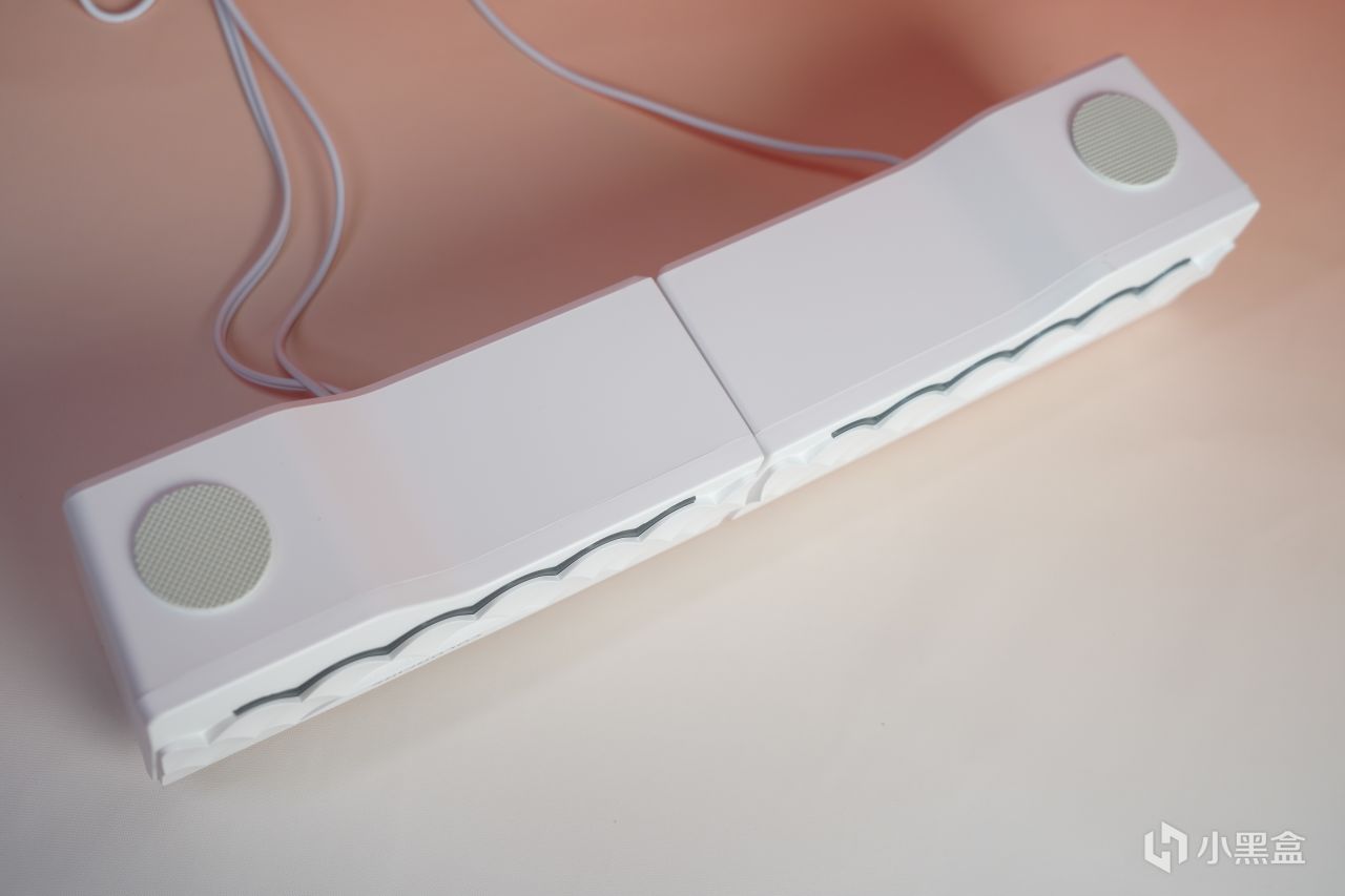 音箱默认形态为SoundBar条状音箱,使得箱体呈拱桥状。意外发现它底部凹槽还能容线材通过,方便键鼠等设备走线。