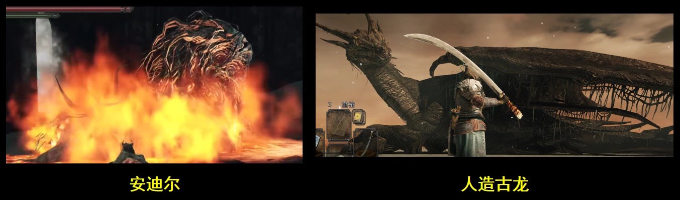 接着,安迪尔便开始用同样的技术对自己进行改造,试图同样成为古龙那样不朽的存在,但这次实验似乎失败了,他为此失去了肉身,失去了一切。最终,安迪尔成为了如同古树一样的永恒生物,成为了自然与原始火焰的一部分。