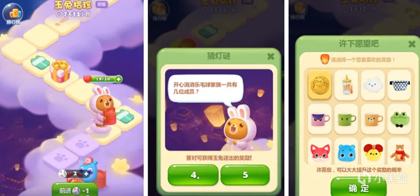 此外,《开心消消乐》也没有把自己框死在消除范畴里做玩法。如2022年夏敦煌联动版本限时上线的飞天琵琶演奏玩法,需要玩家通过消除玩法修复弦,之后就能用来弹奏,引爆了玩家分享“自创奏乐”的兴趣;又比如2021年中秋前后推出的类大富翁玩法,玩家可以通过消除玩法获取前进所需的骰子,探索包含趣味问答及福利奖励在内的大富翁地图。